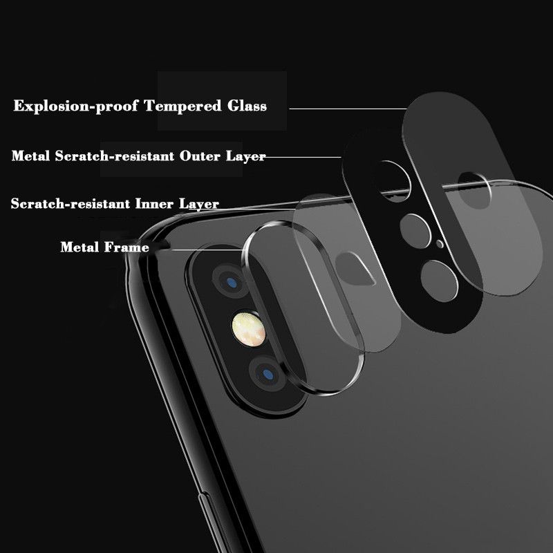 iPhoneX iPhoneXS iPhoneXSMax iPhoneXR High Quality Full Cover Metal Ring Camera Lens Tempered Glass Film For iPhone XS Max XR X Anti-Fingerprints Phone Camera Lens Bumper Protector