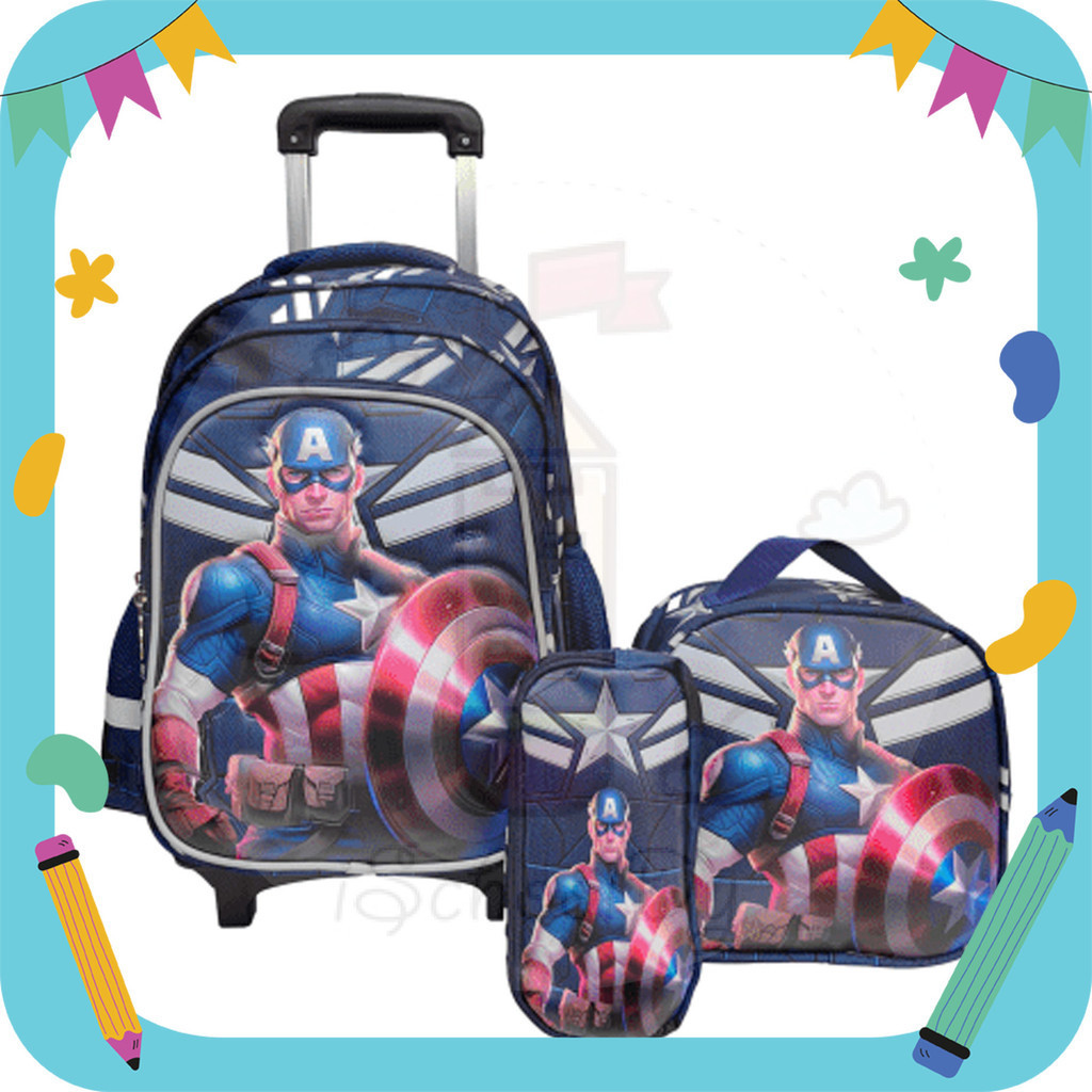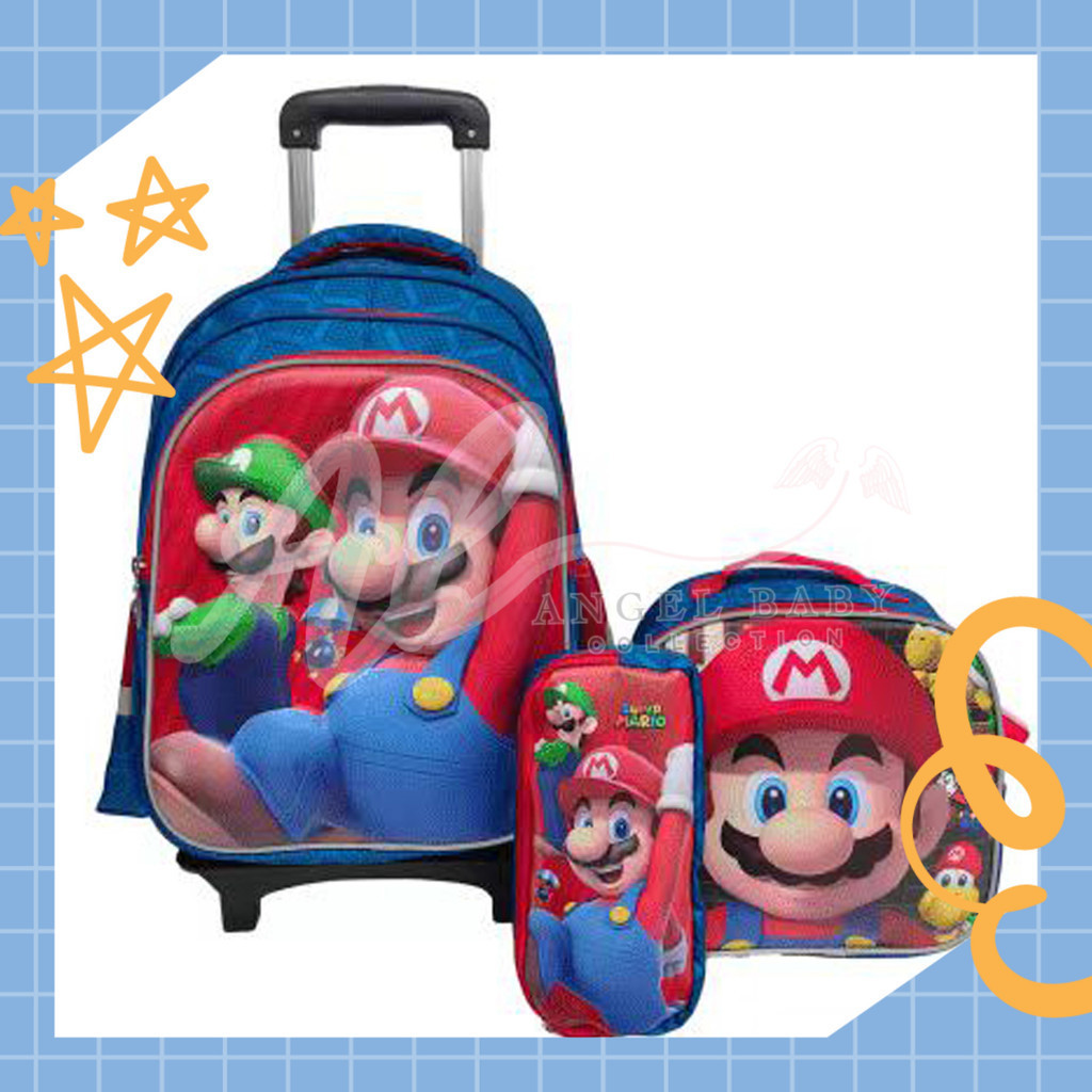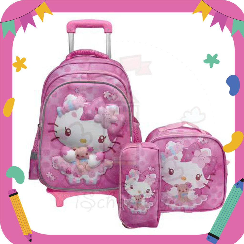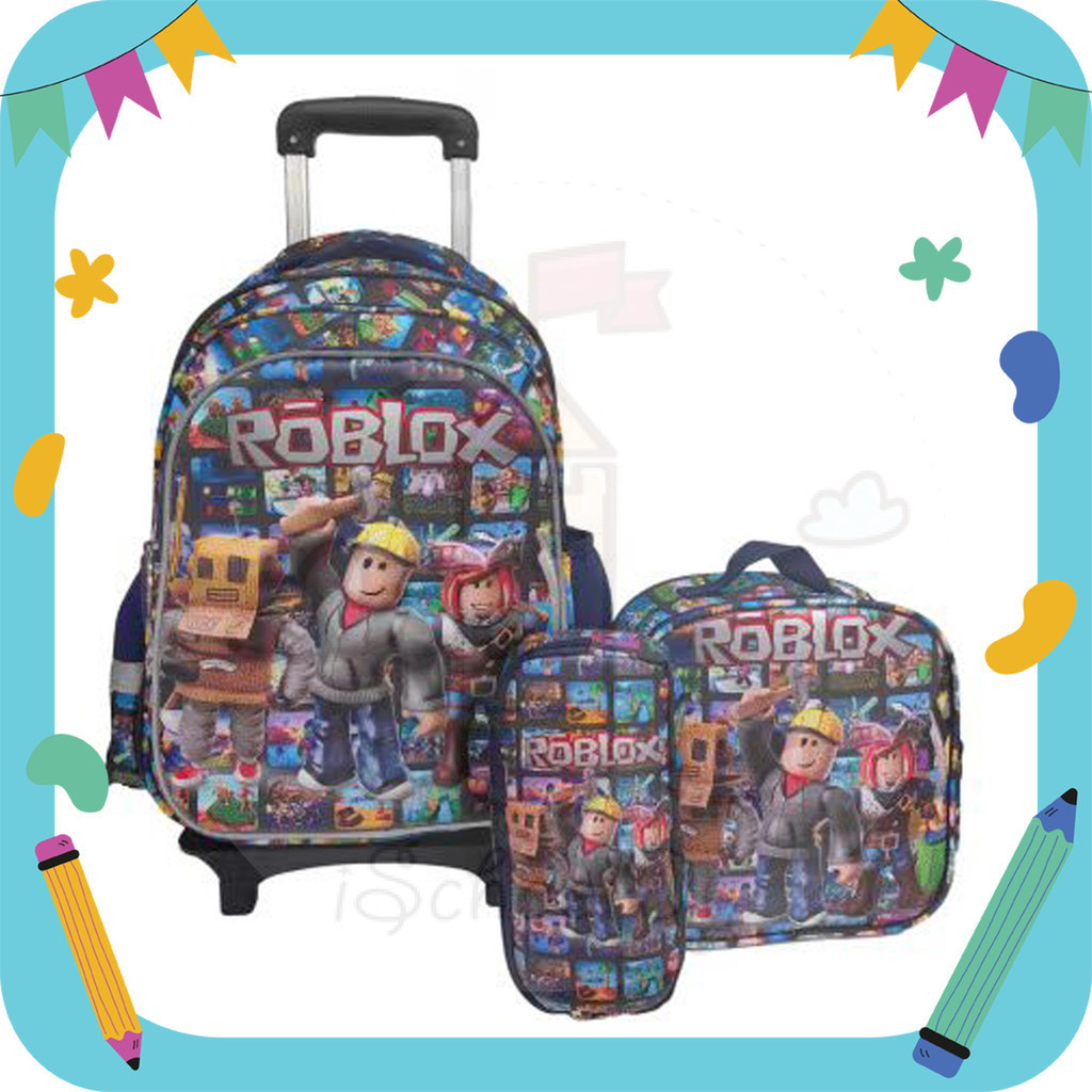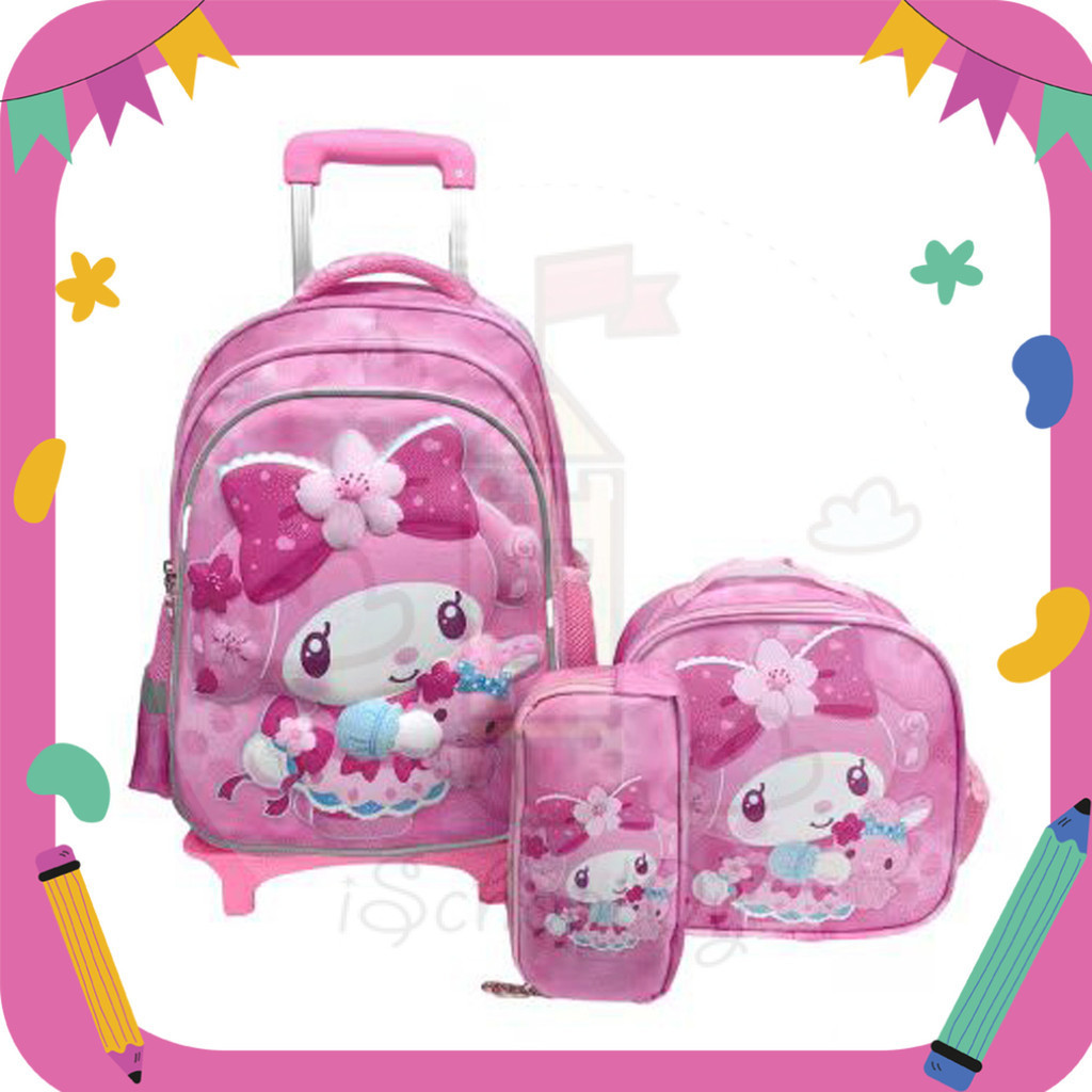 iSchoolDy Kids Trolley Beg Roblox Spiderman Melody Kuromi 15' School Backpack Kids Removable Trolley School Bag Set