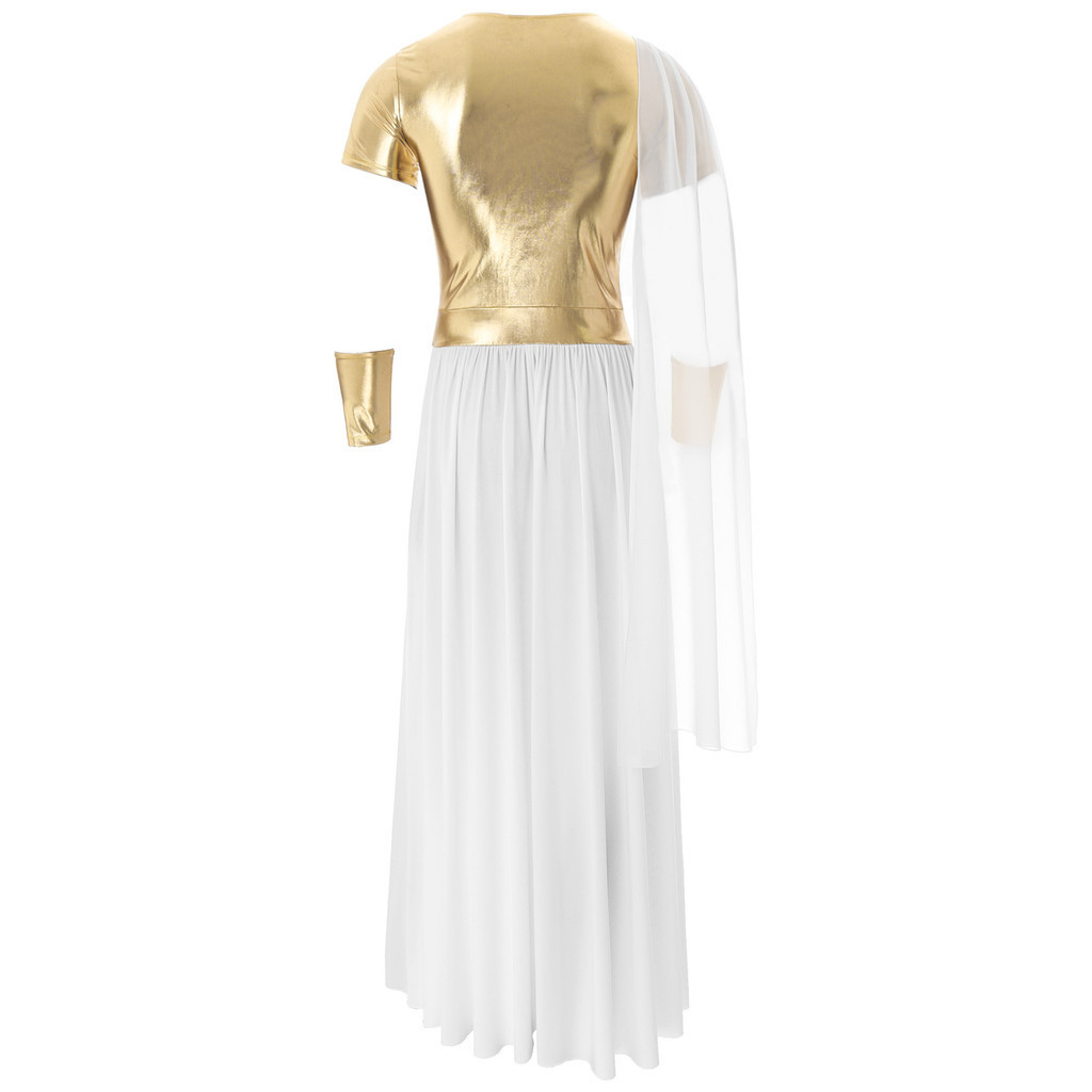 inhzoy Mens Halloween Ancient Greek Toga with Gloves Short Sleeve Metallic Patchwork Robe with Wristband Pullover Tunic Cosplay Roman Costumes