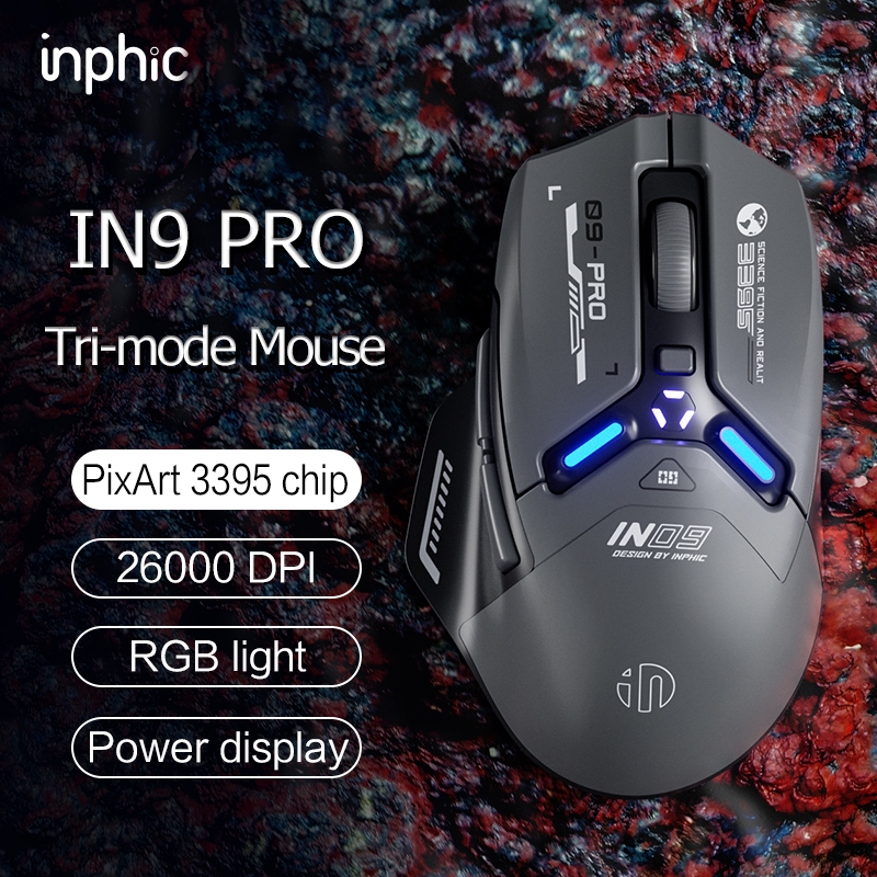 inphic IN9 pro Gaming Mouse Tri-mode Wireless PAW3395 26000dpi 6-button Customized Optical Mouse