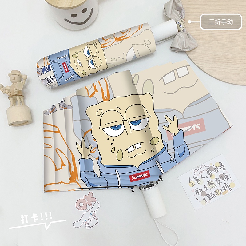 ins Spongebob Automatic Umbrella Mini Folding Umbrella Sunscreen Anti-UV Sunshade Umbrella Vinyl Sun Umbrella
