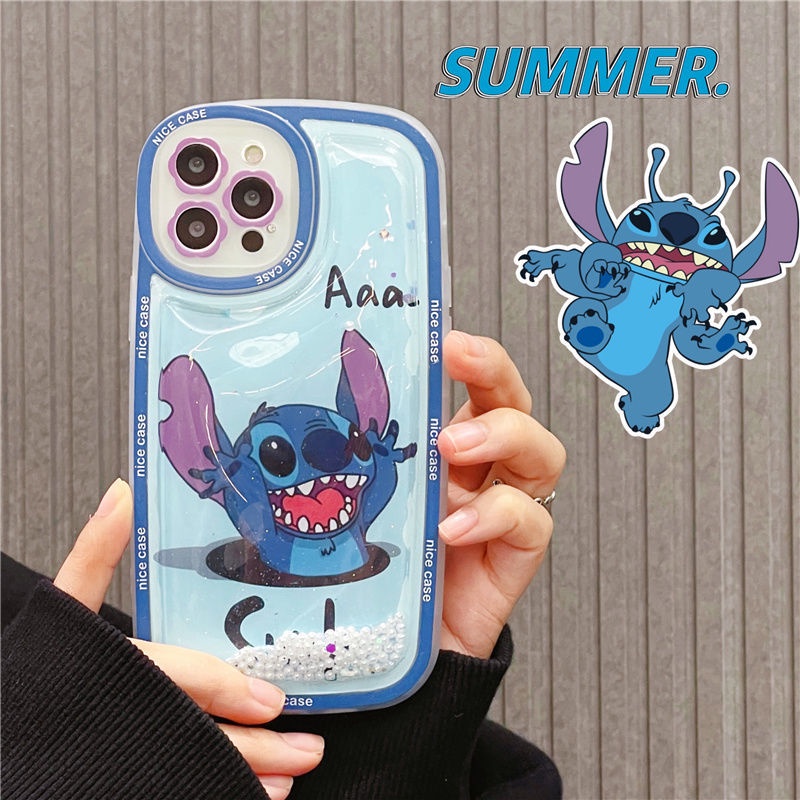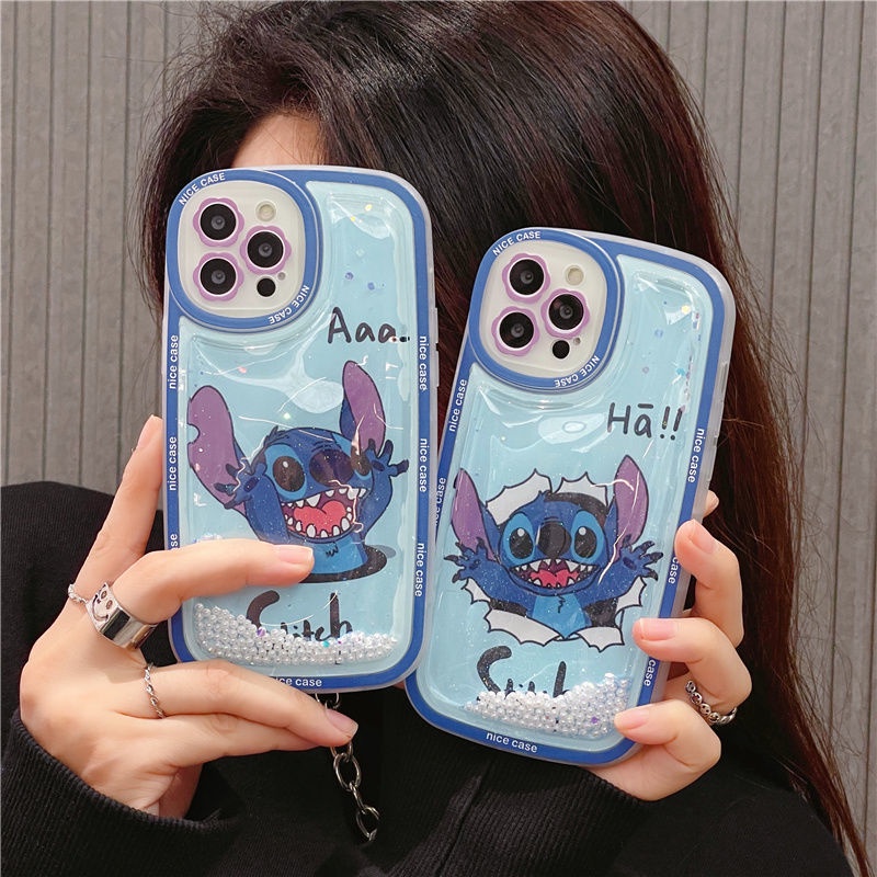 iphone 13 Glitter Case Surprise Stitch Cute Pearl shockproof full coverage Compatible With 12 11 pro max XR XS SE
