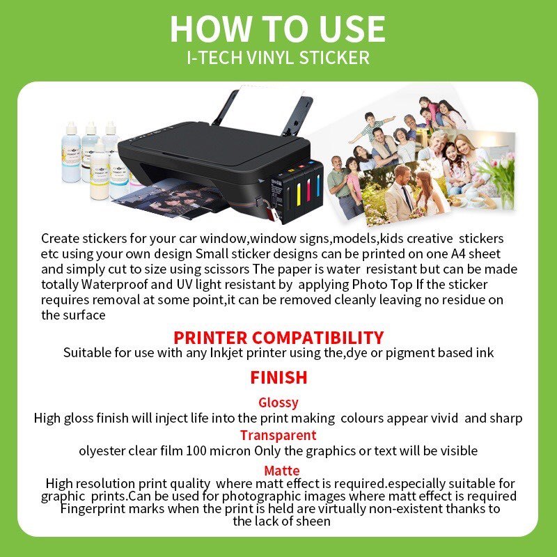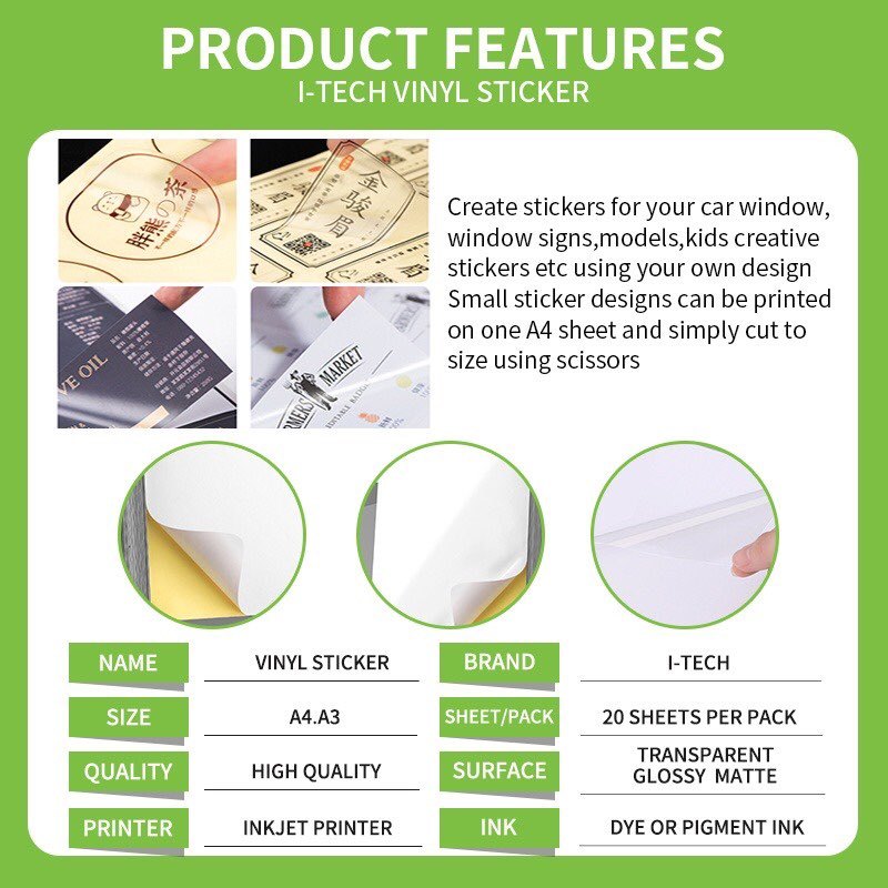 itech Vinyl Sticker Waterproof A3 (Matte / Glossy / Transparent) 20sheets/pack