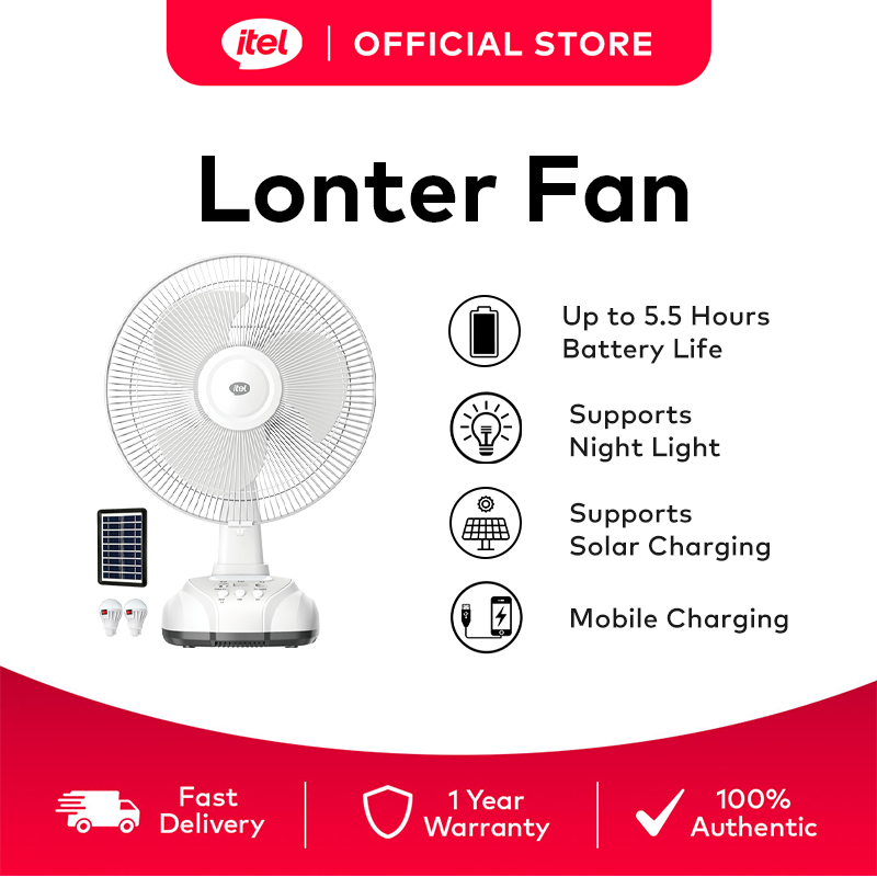 itel Electric Lonter Fan 12 Inch Countertop 24W Energy Storage Fan IF12-M001