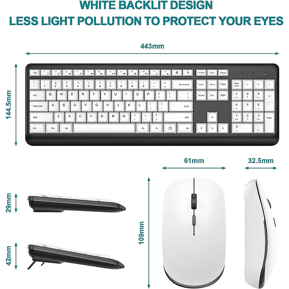 jomaa Wireless Keyboard and Mouse Combo 2.4G Ergonomic Wireless Computer Full Size Wireless Keyboard and Mouse