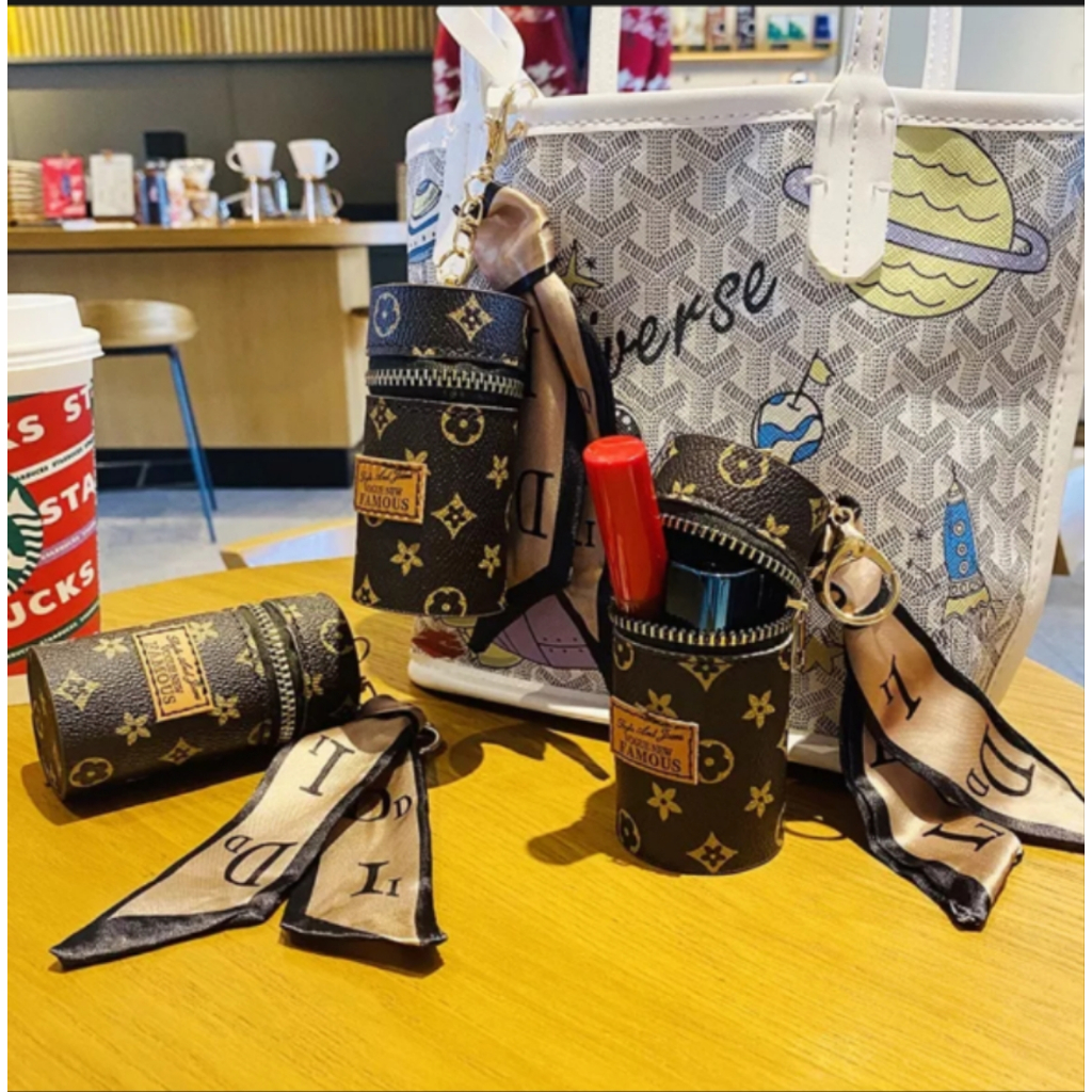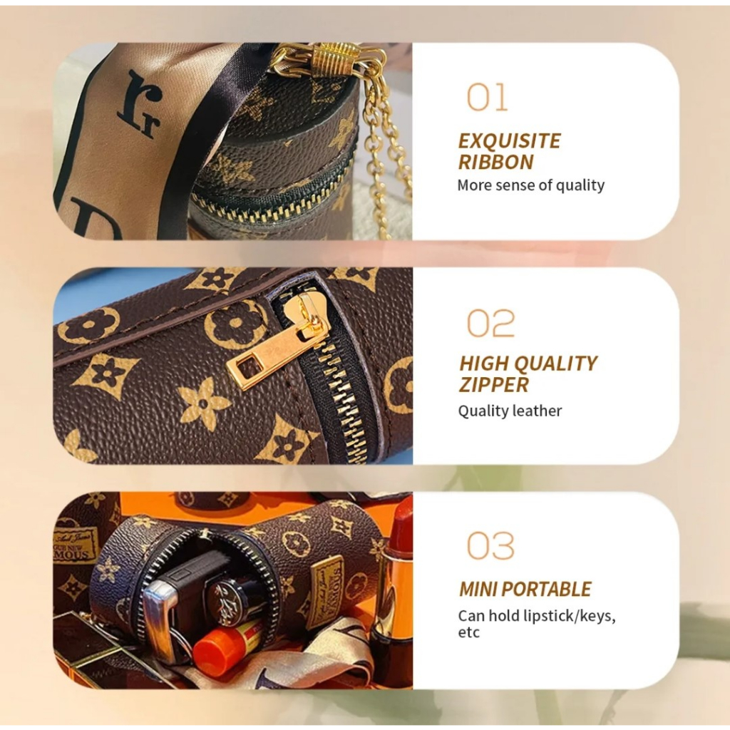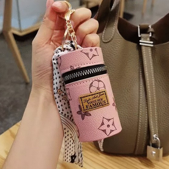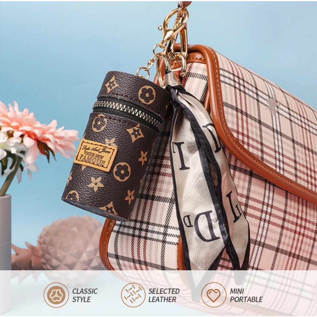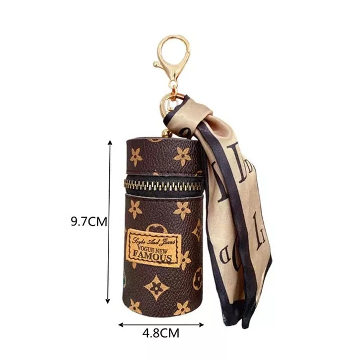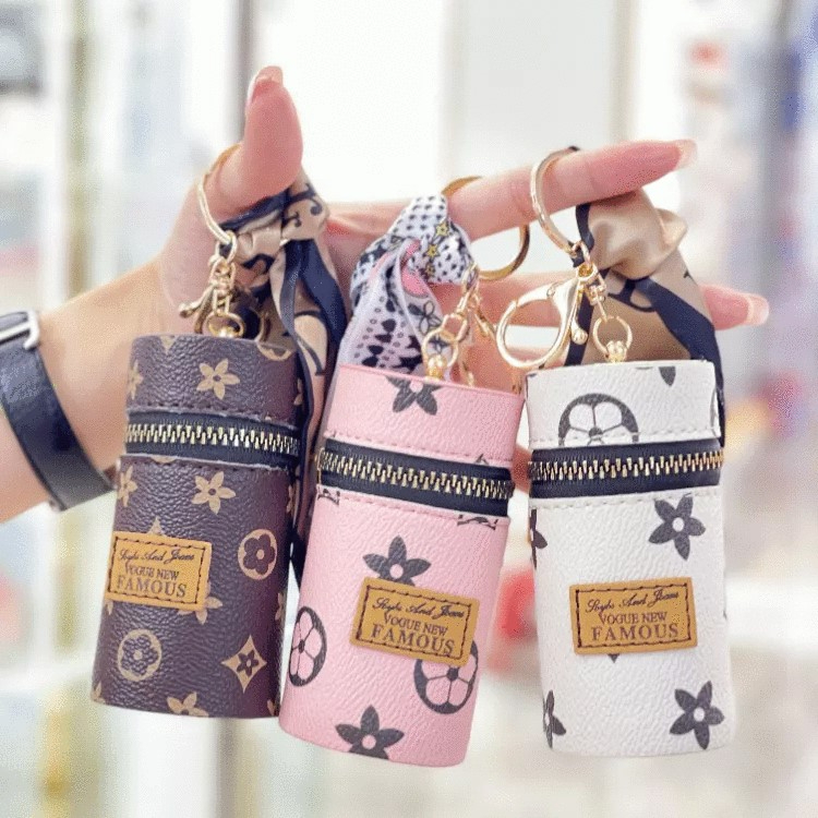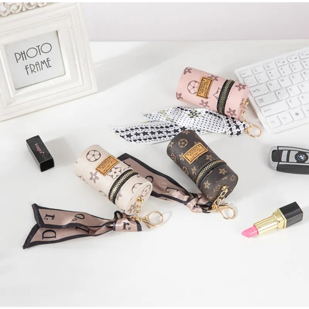 keychain Leather Coin Purse Retro Print Mini Lipstick bag Silk Scarf Coin Holder Wallet Keychain