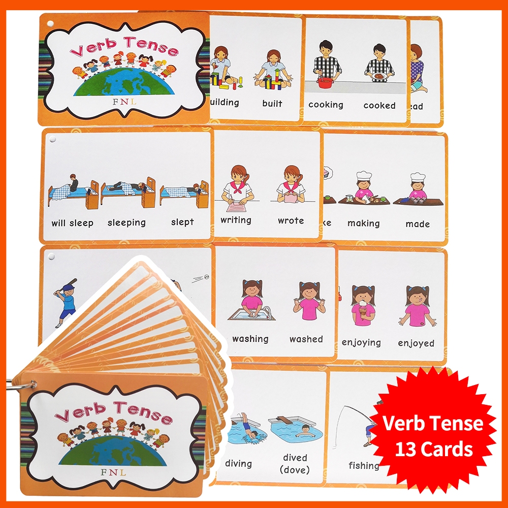13PCS Verb Tense Flashcards Irregular Verbs past Present Continuous for Kids Preschool Homeschool Grammar Learning Educational Materials