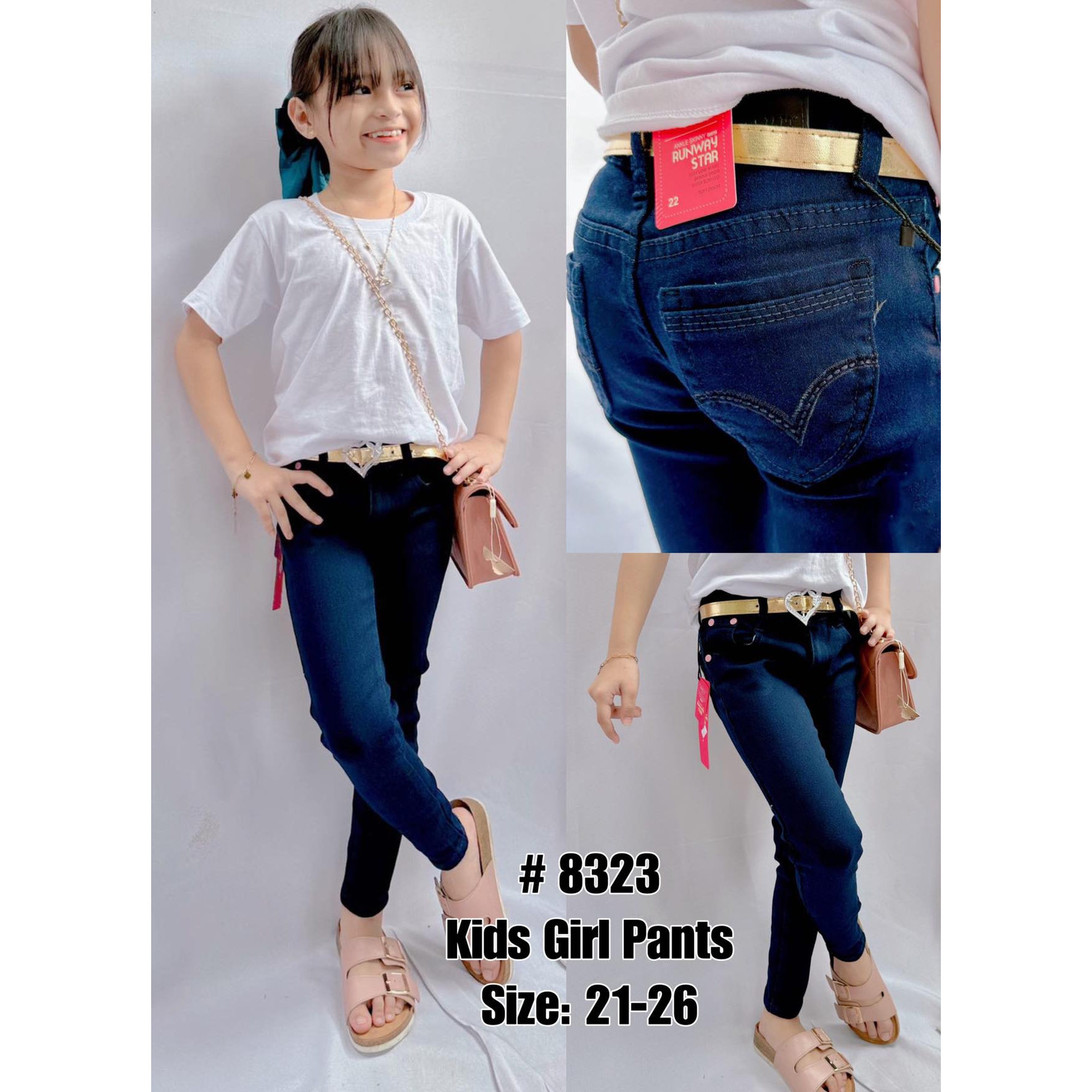 kids girl skinny pants JEANS floral embroidery size 21 to 26 8323
