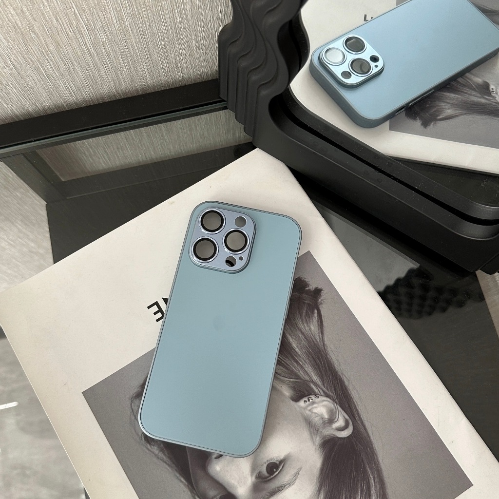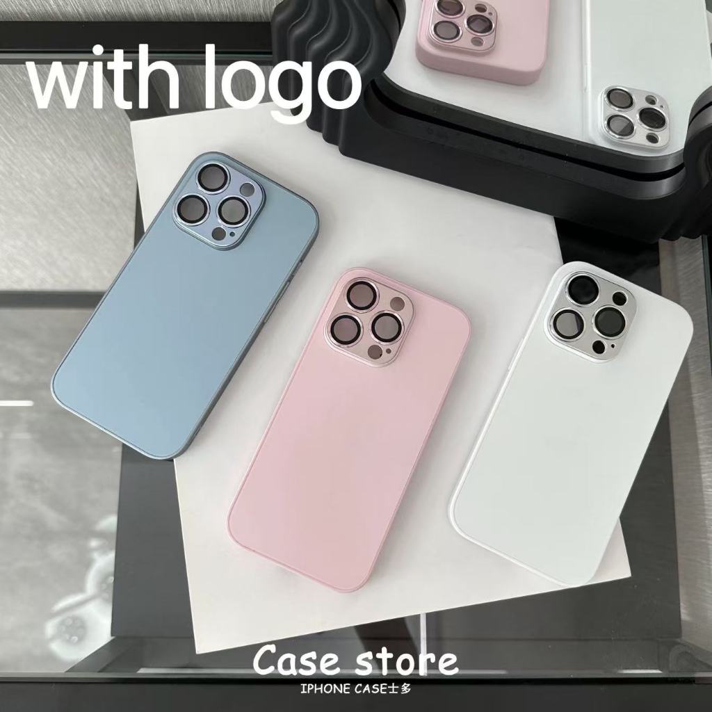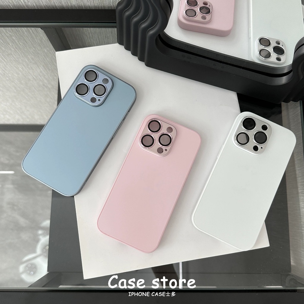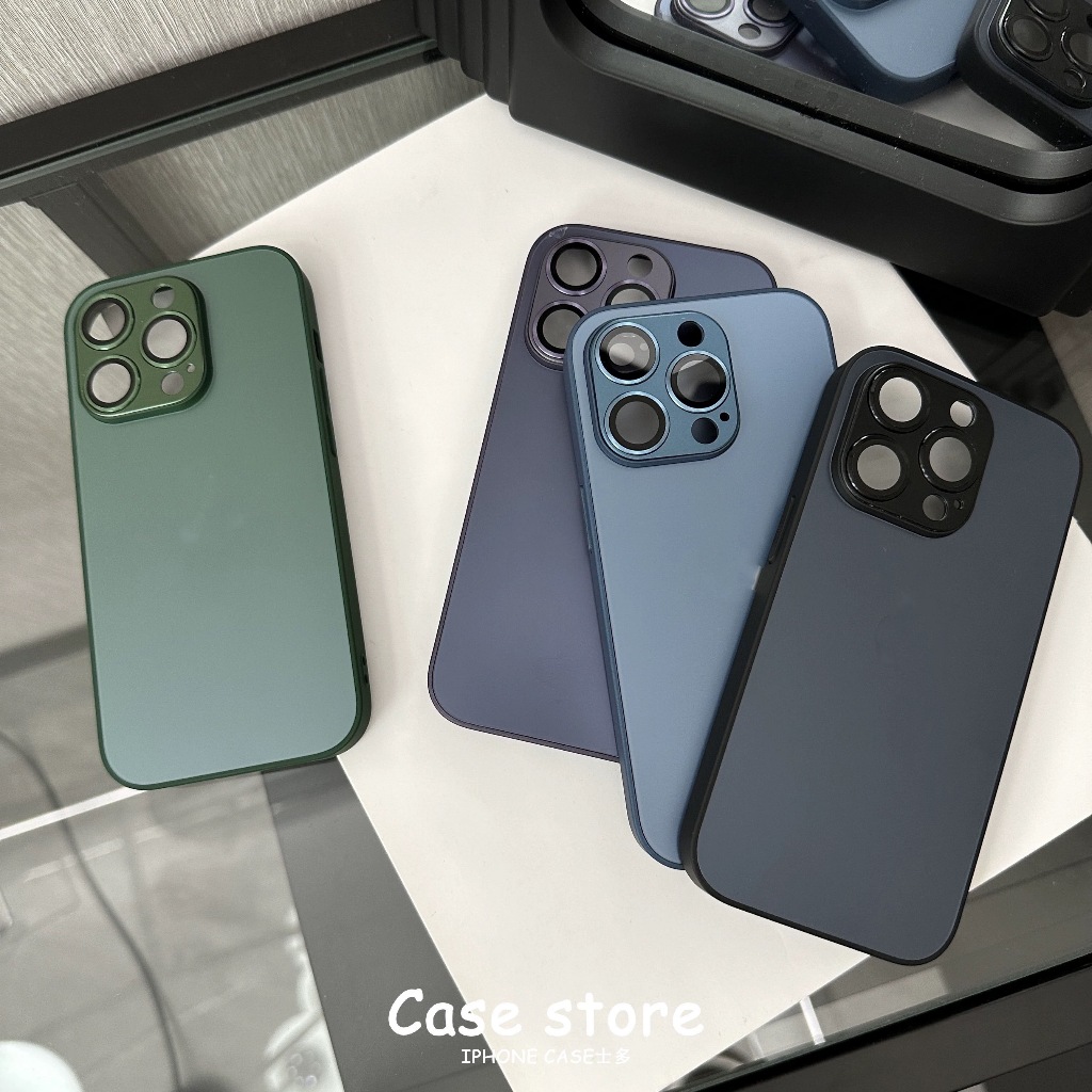 【With Case】KL Store Luxury Titanium Gray Nano AG Matte Glass Phone Case for Iphone 14 Plus 13 12 11 Pro Max Plus Lens Full Cover Protective Anti-fall Hard Casing