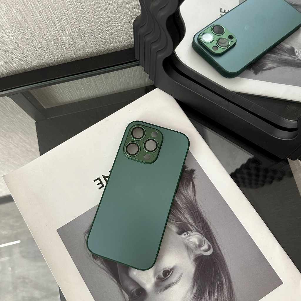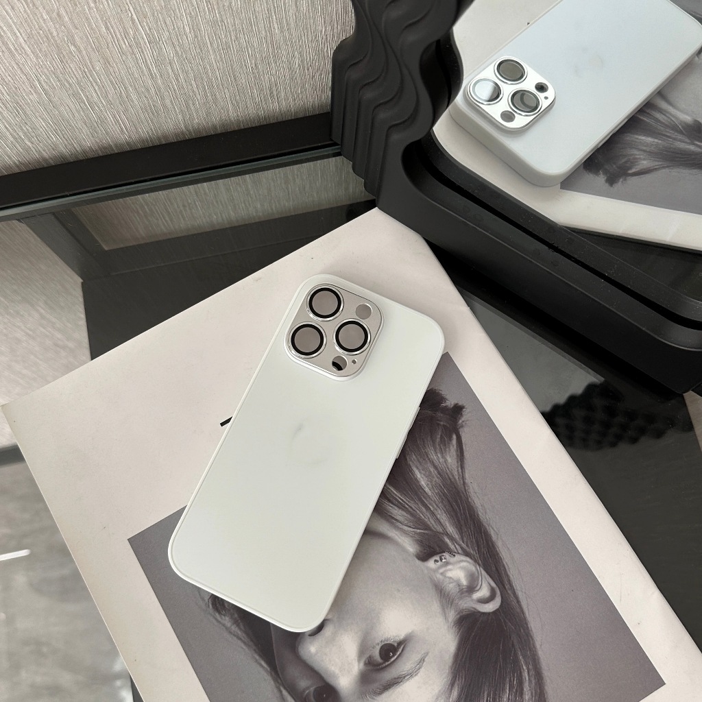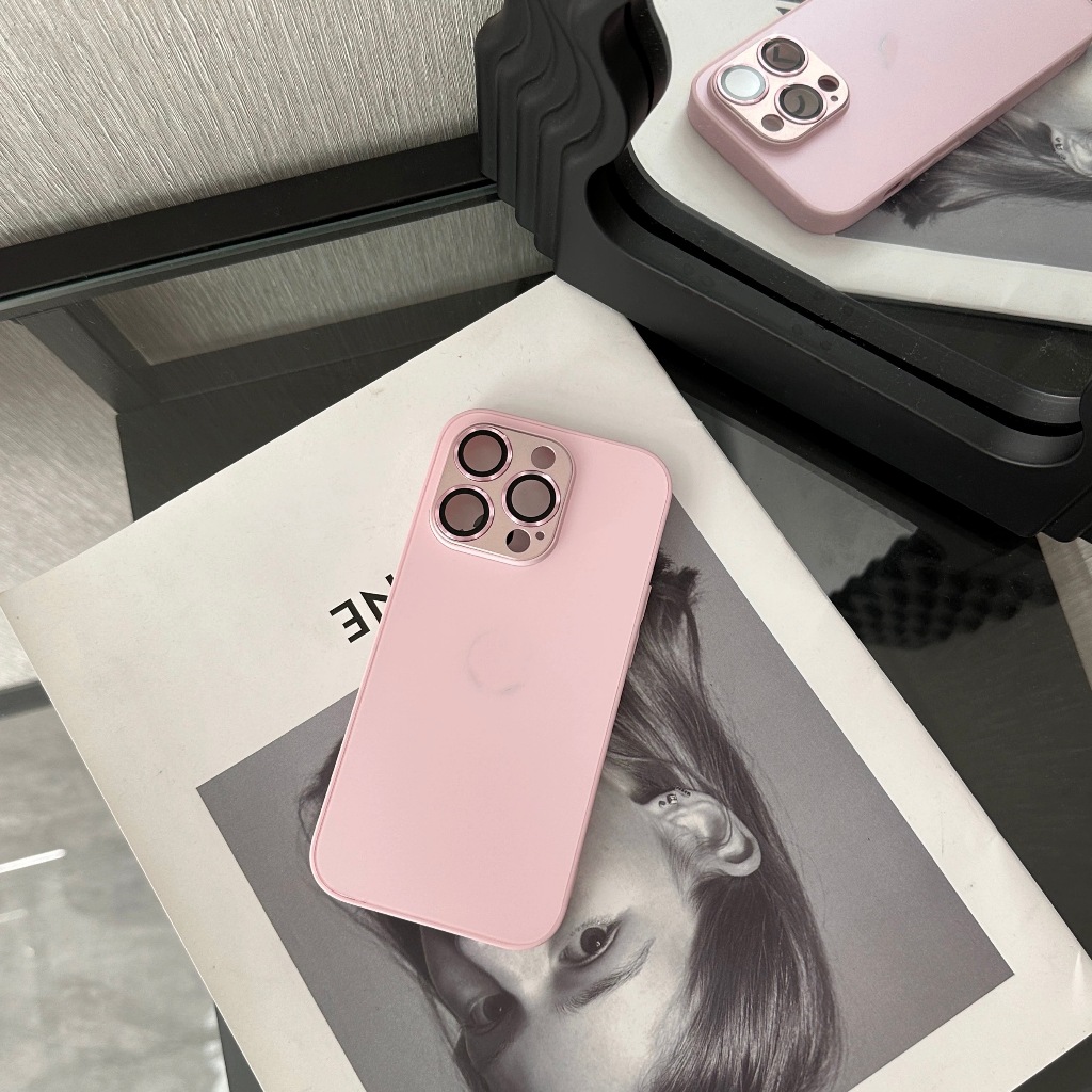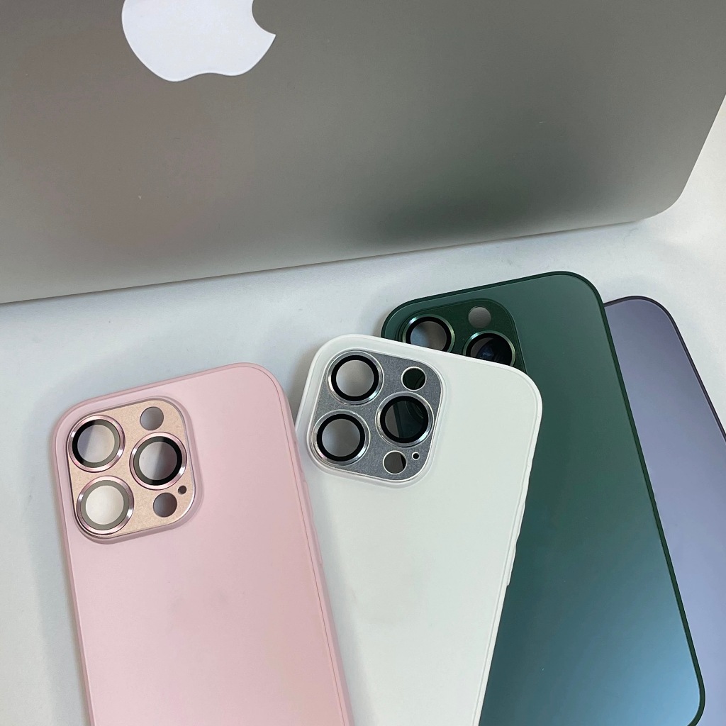 【With Case】KL Store Luxury Titanium Gray Nano AG Matte Glass Phone Case for Iphone 14 Plus 13 12 11 Pro Max Plus Lens Full Cover Protective Anti-fall Hard Casing
