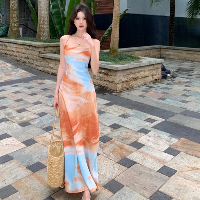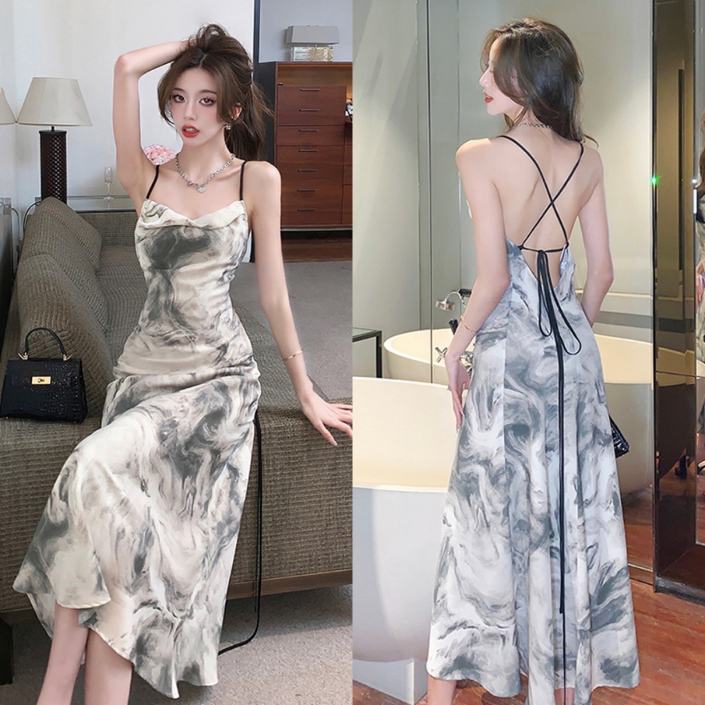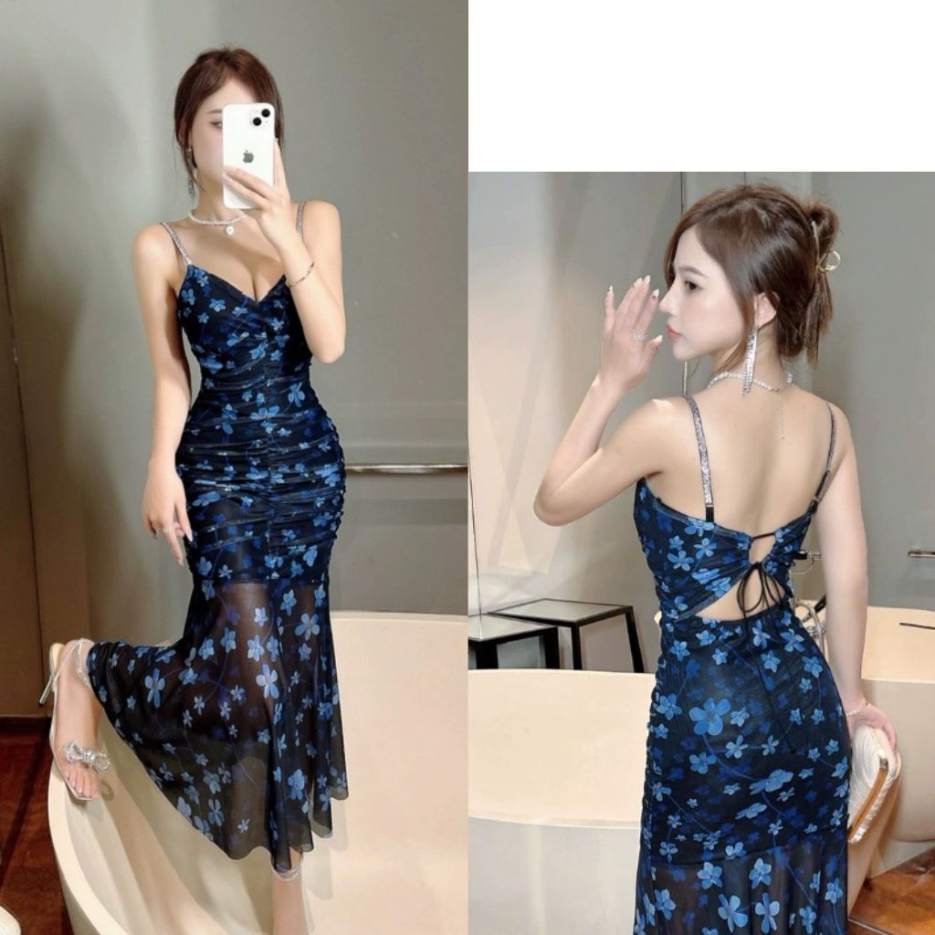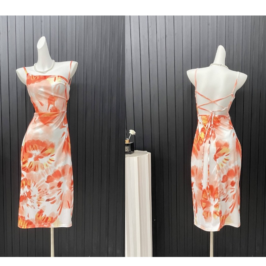 korean pastel floral dress formal sleeveless sexy bodycon midi halter backless dress for women party