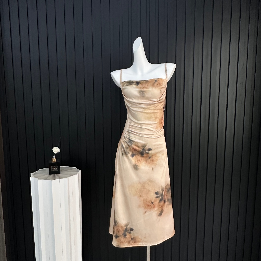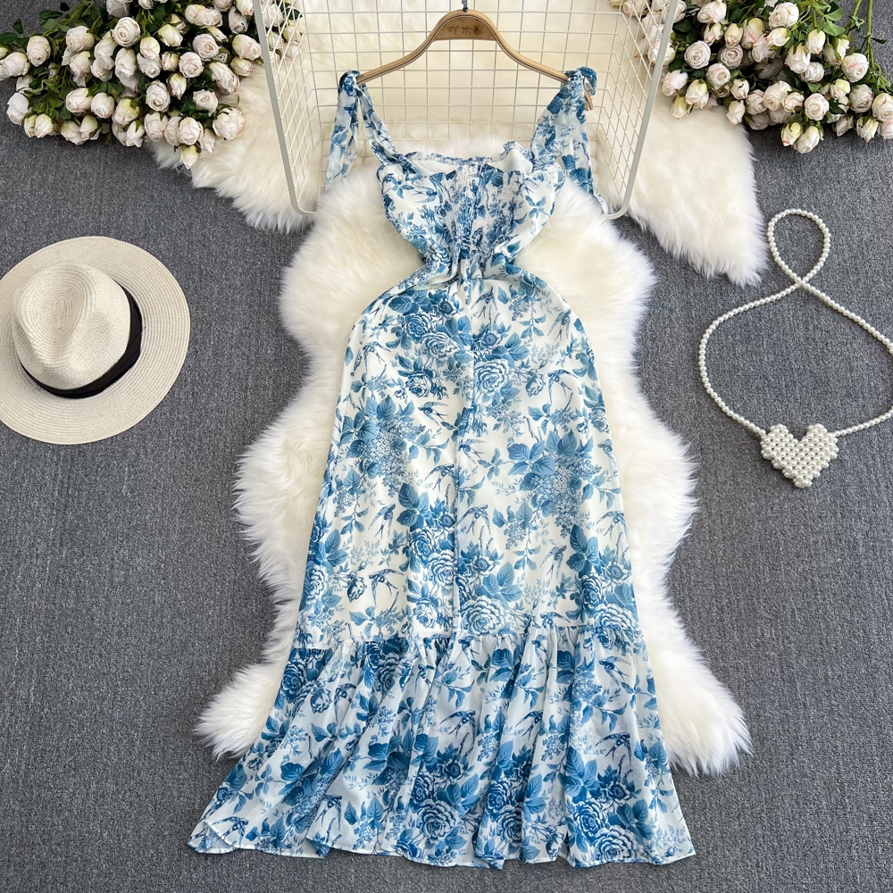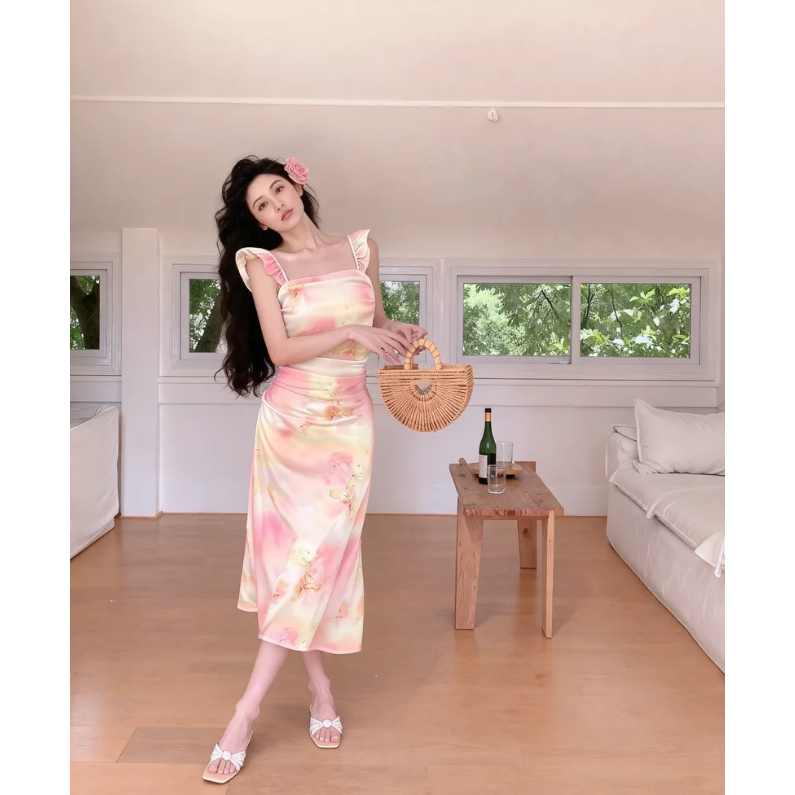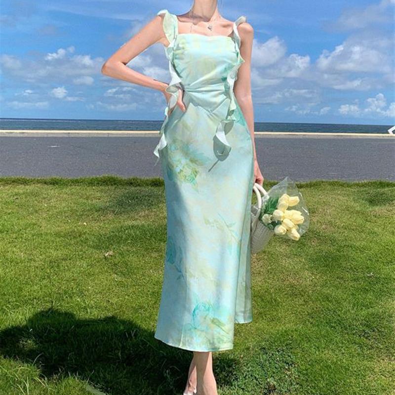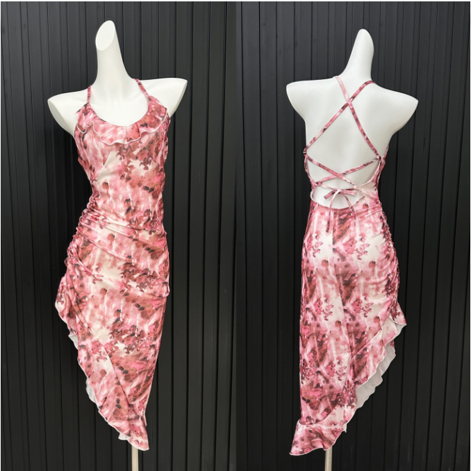 korean pastel floral dress formal sleeveless sexy bodycon midi halter backless dress for women party