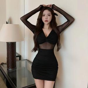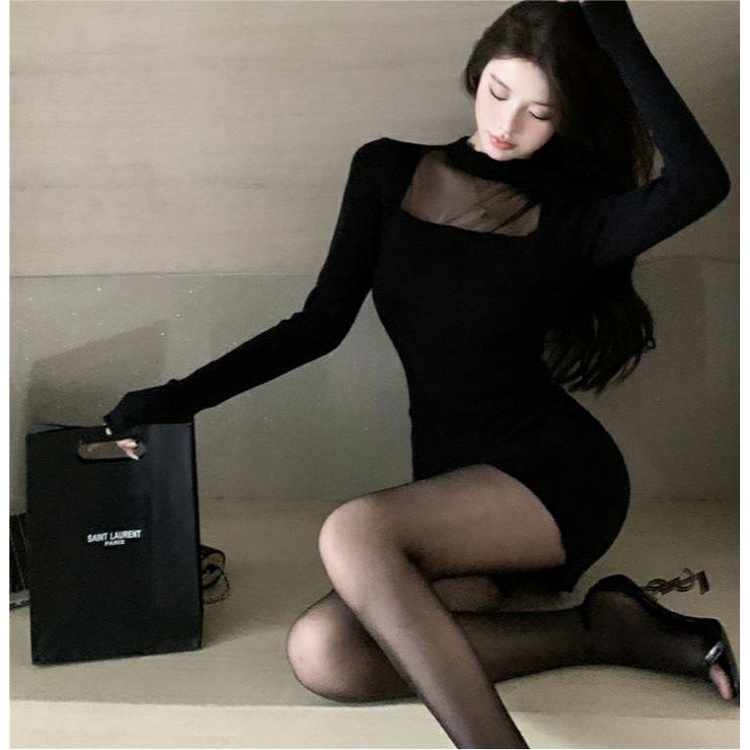 korean sexy black bodycon dress for woman casual plus size turtle neck long sleeve dress night party dress for women elegant fitted mini dress