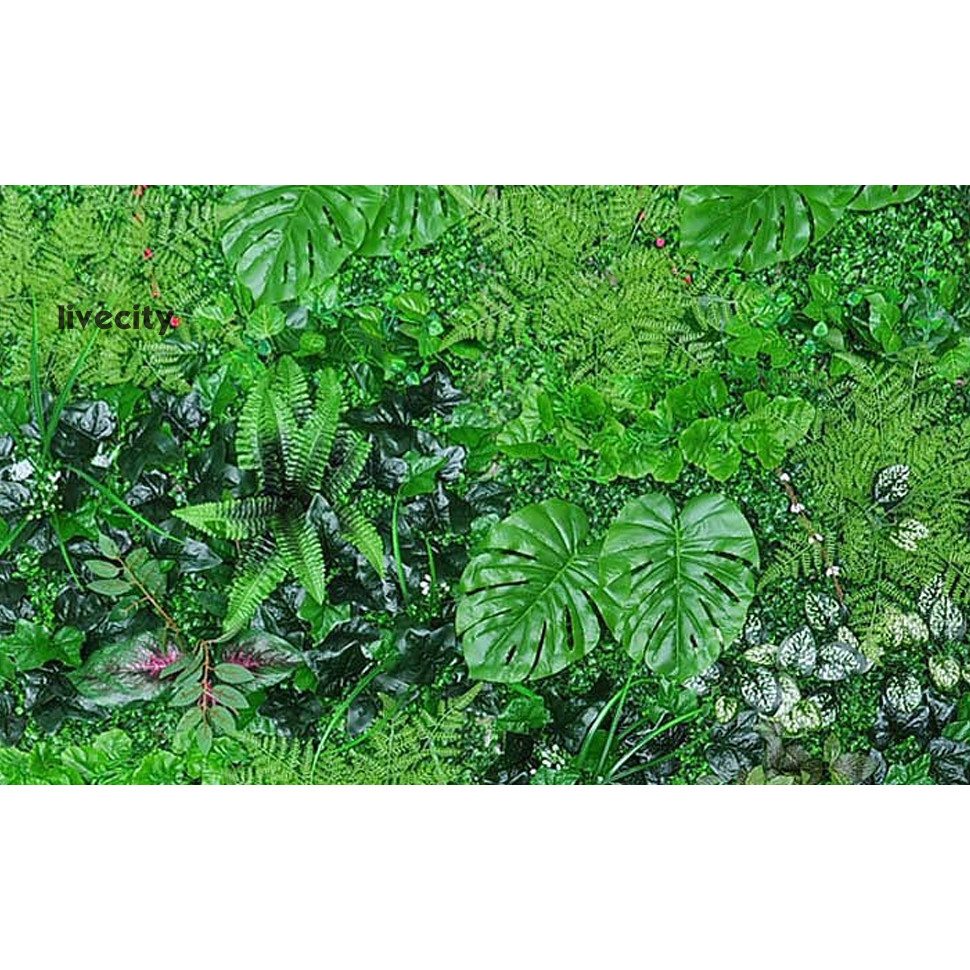 [livecity] Realistic Leaf Wall Panel Artificial Plant Wall Panel Realistic Artificial Grass Wall Panel for Indoor Outdoor Garden Decor 40x60cm