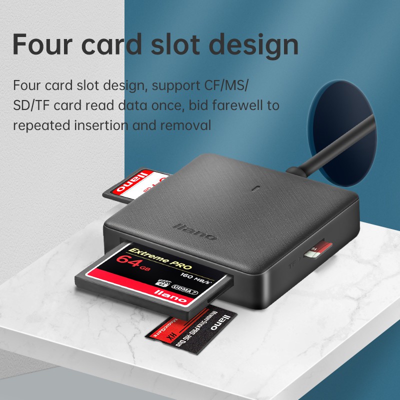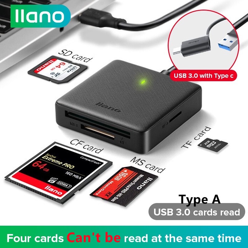 llano 4 in 1 Card Reader Support SD/TF/CF/MS Card Reader USB Hub With Type C Converter Multifunction