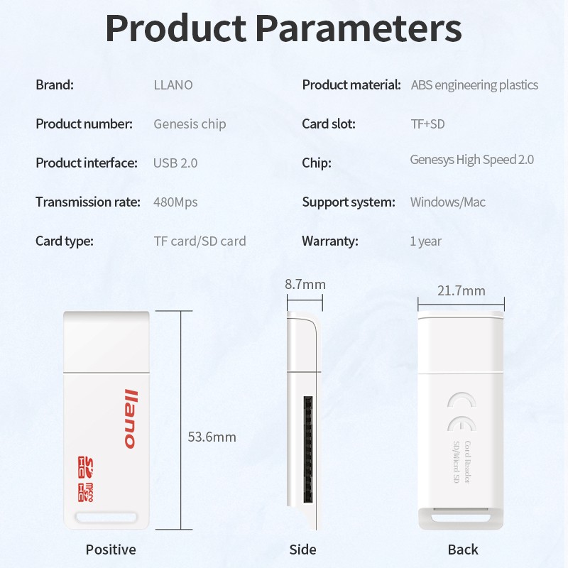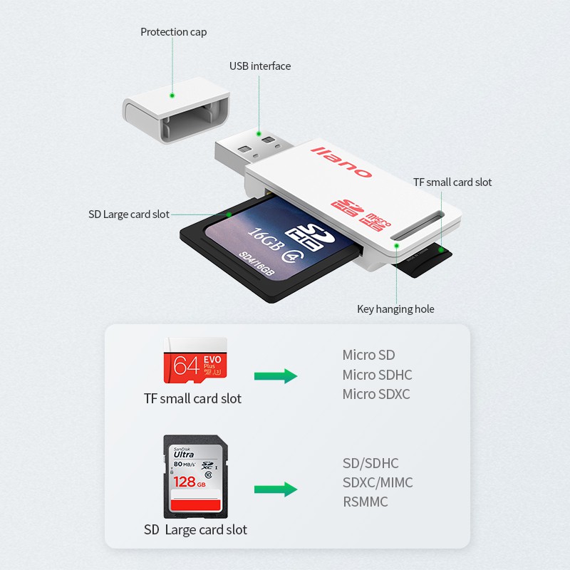 llano USB 2 in 1 TF SD Card Reader Micro Card Reader