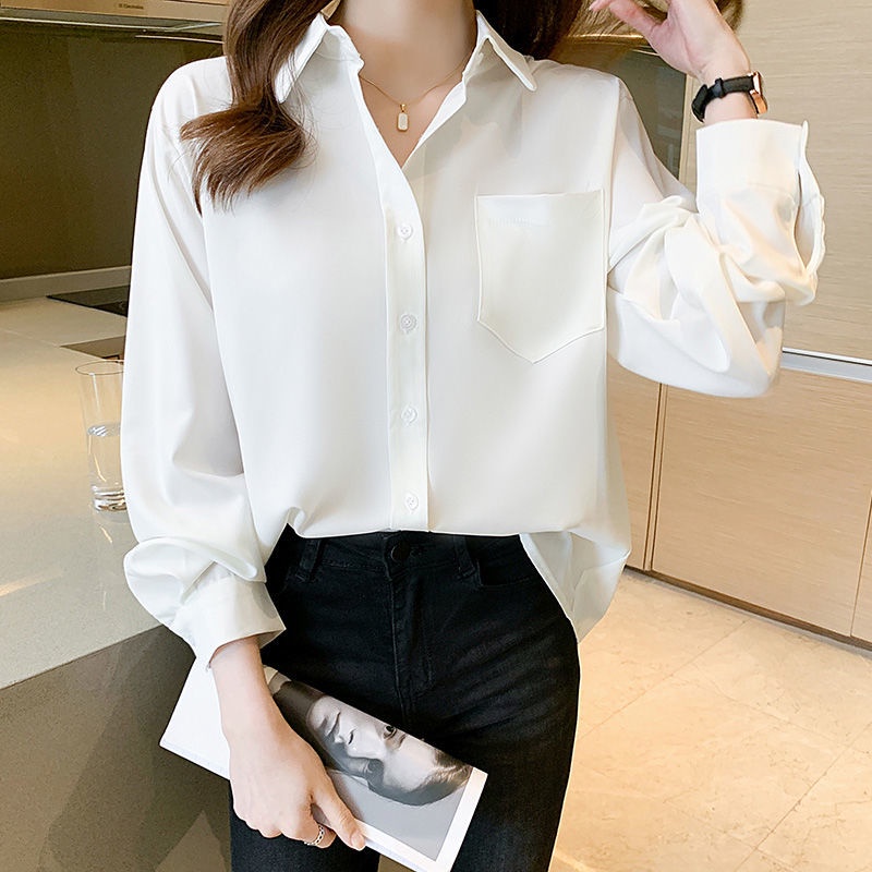 long sleeve blouse for women plus size top loose thin temperament white blouse fashion casual