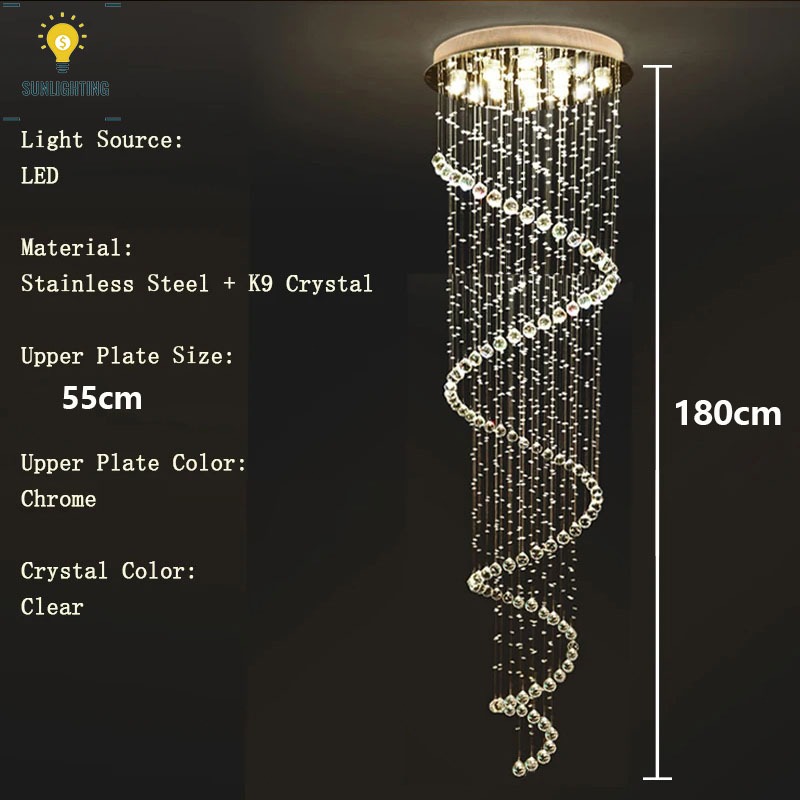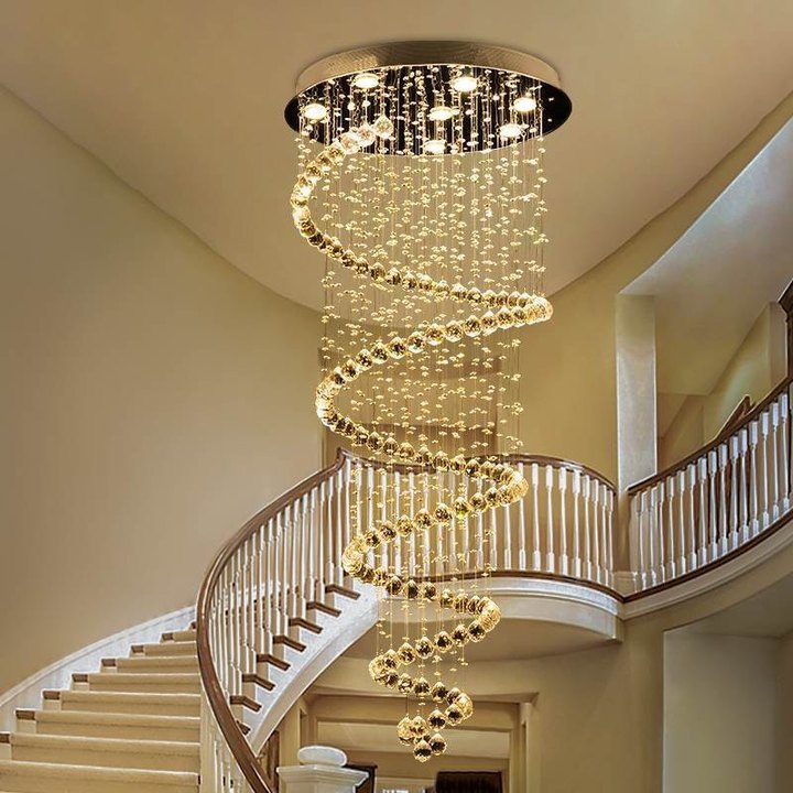 luxury Crystal Chandelier Light Villa Stair Rotating Apartment Modern High Ceiling Light Drop lamp