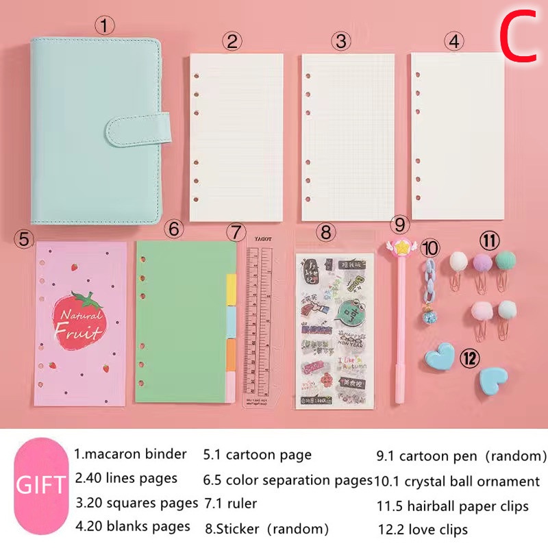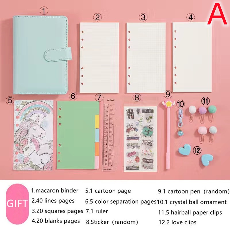 macaron binder A5/A6 Color Macaron Notebook Office Storage Stationery Binder Notepad Album Binder