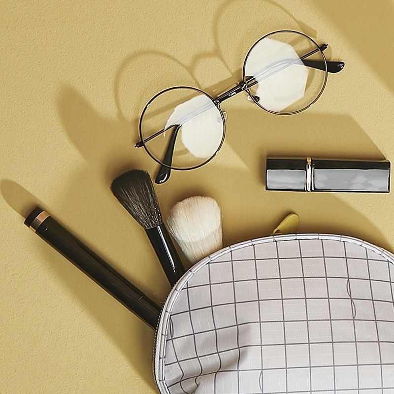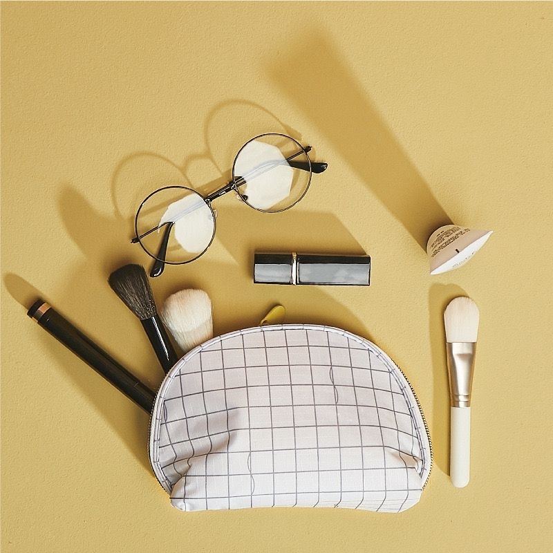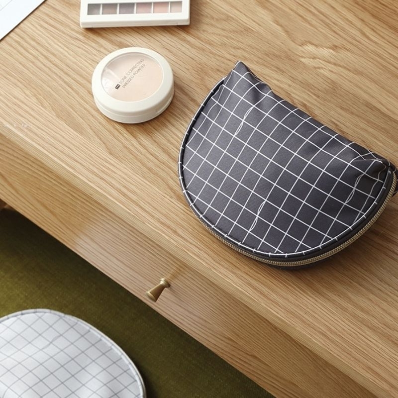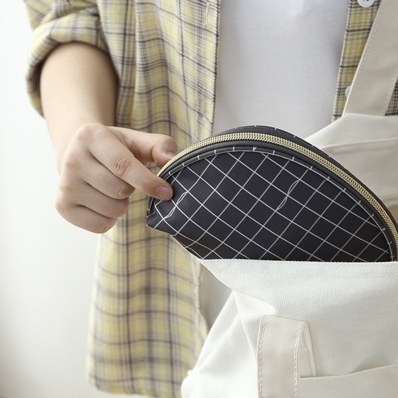 make up pouch bag in canvas and checkered print design mini bag storage for cosmetics and beauty BA