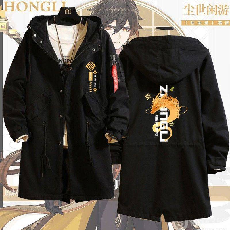 men's anime trench coat The original god surrounding the clothes anime mid -length windbreaker Japan