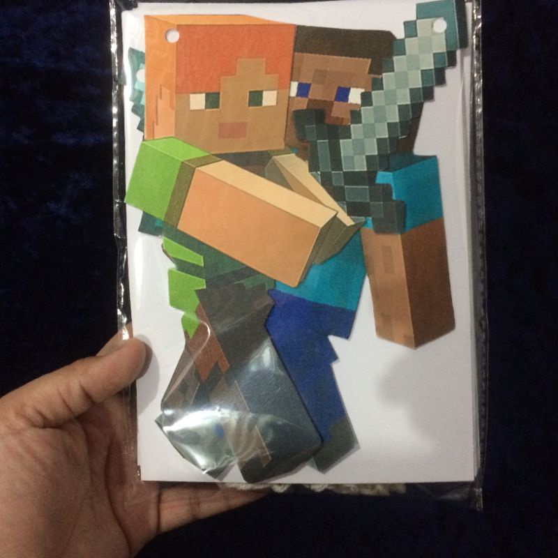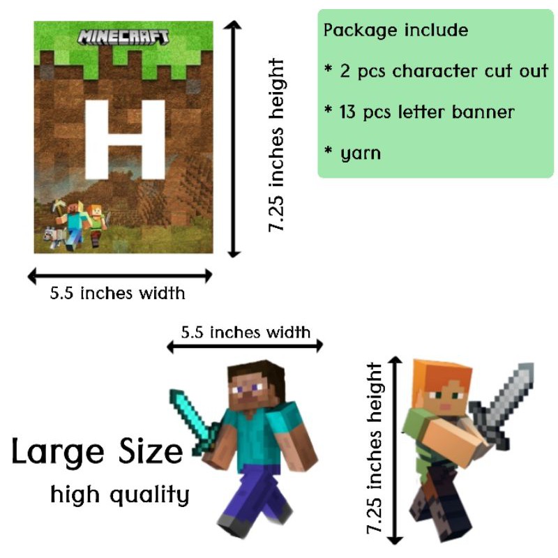 Minecraft Large size happy birthday banner set 15pcs yarn included