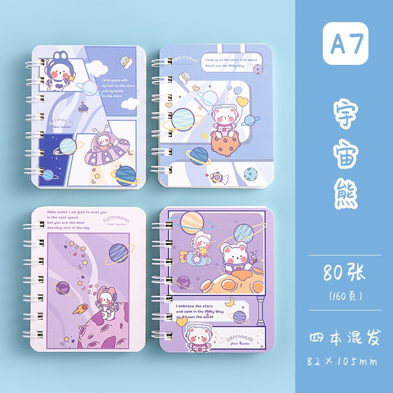mini diary book diary A7 Cute Mini Spiral Notebook Cartoon Diary Notepad Coil Book School Stationery