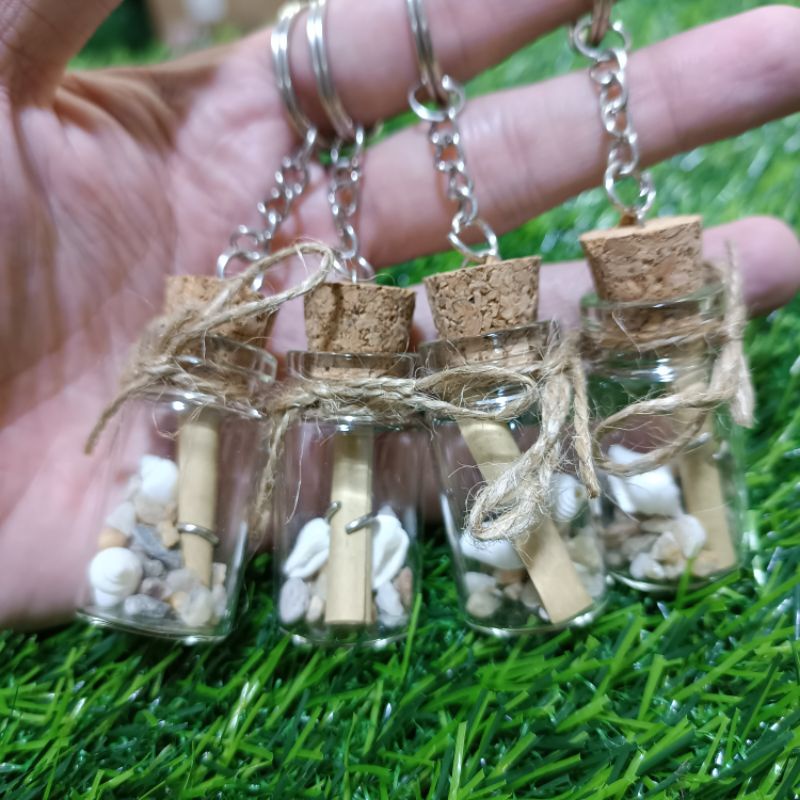 mini wishing bottle keychain with shell