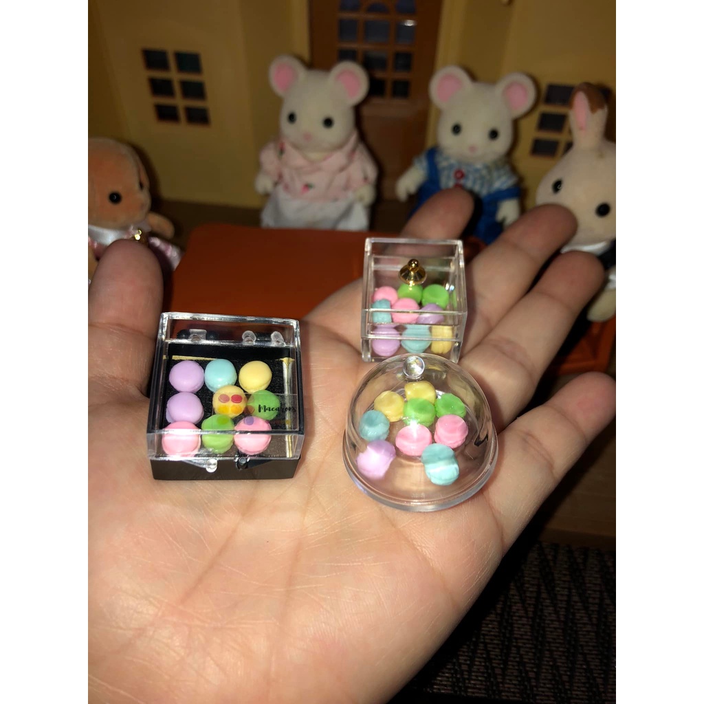 miniature macarons with case for your dolls,figures and doll houses and dioramas sylvanian