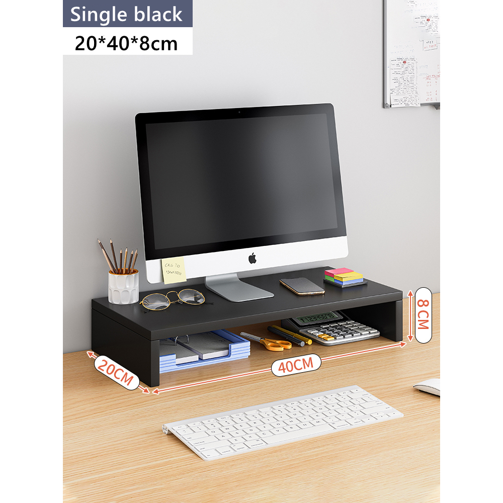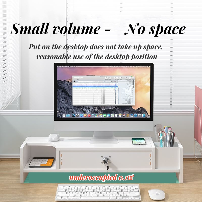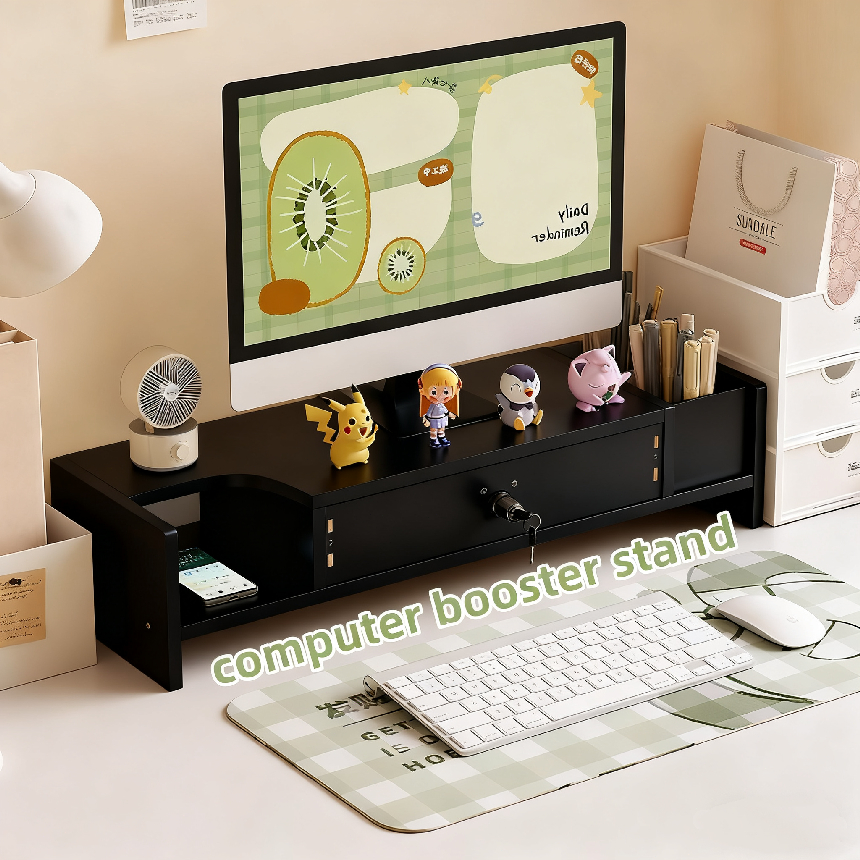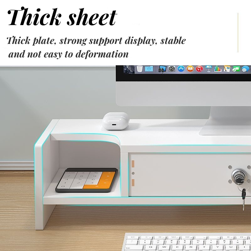 monitor riser wood laptop stand computer locking drawer with pencil holder monitor stand black/white