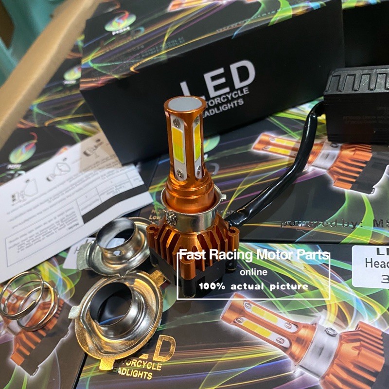 motorcycle tri led headlight high/low white/yellow all weather universal 45w 3led msm