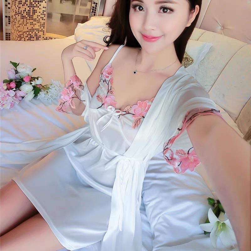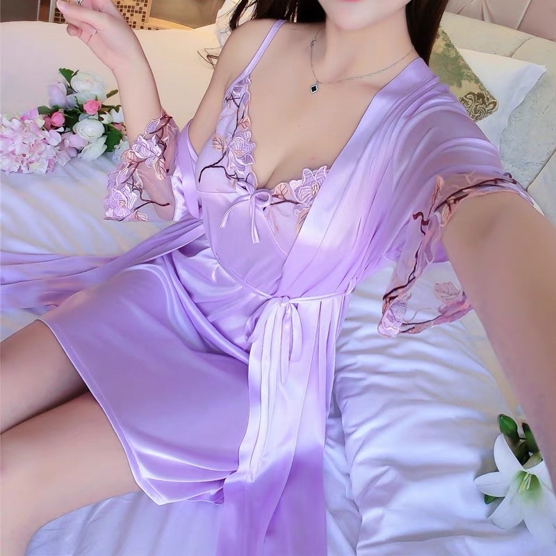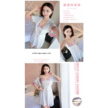 night wear bathrobe 2in 1 NEW COD Ice silk Lace sling two-piece nightgown Sleepwear