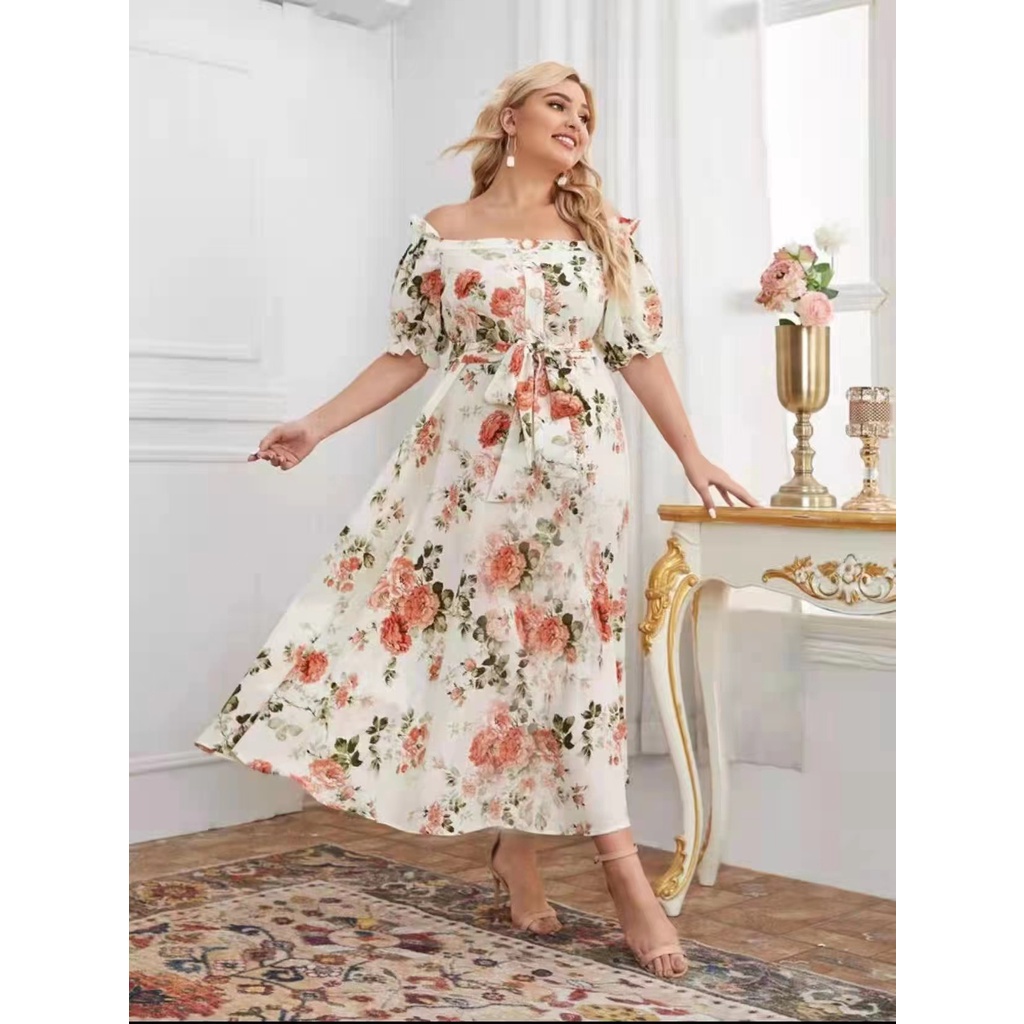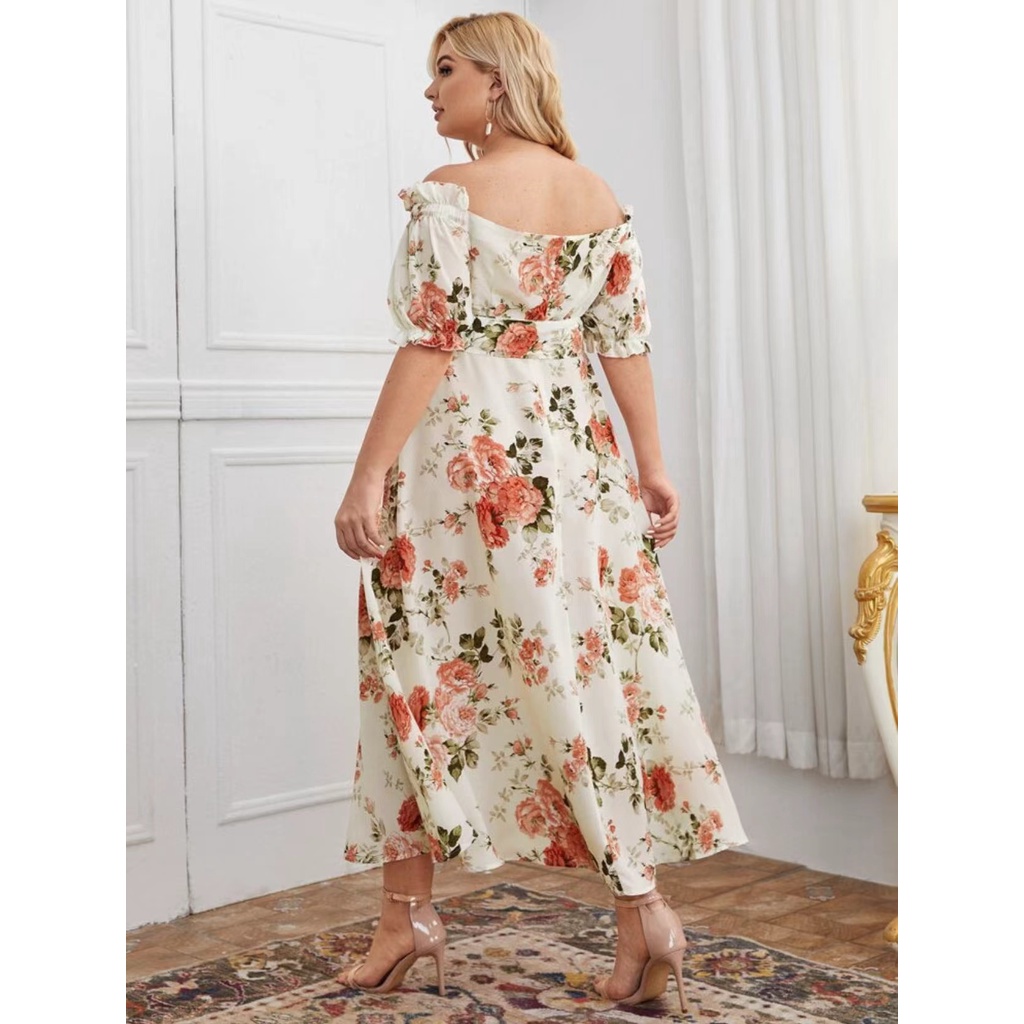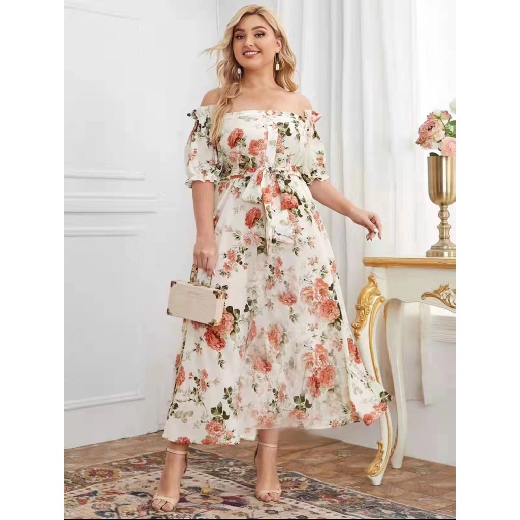 off shoulder White maxi PLUS size DRESS (FIT TO XL)