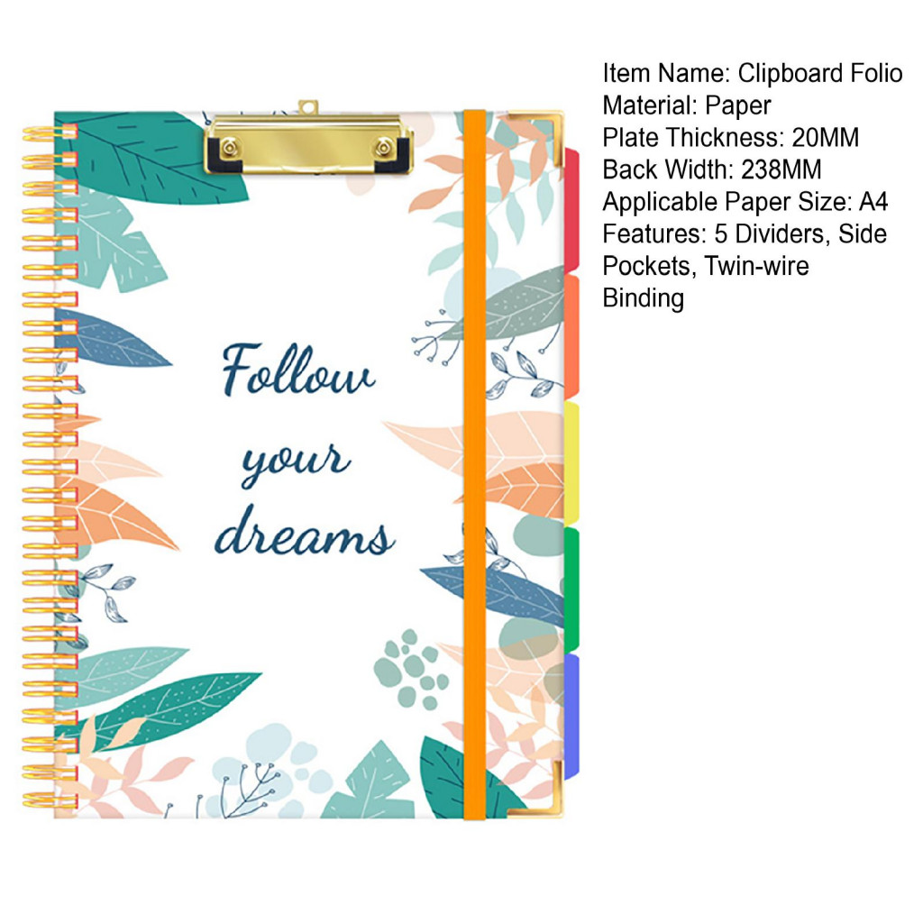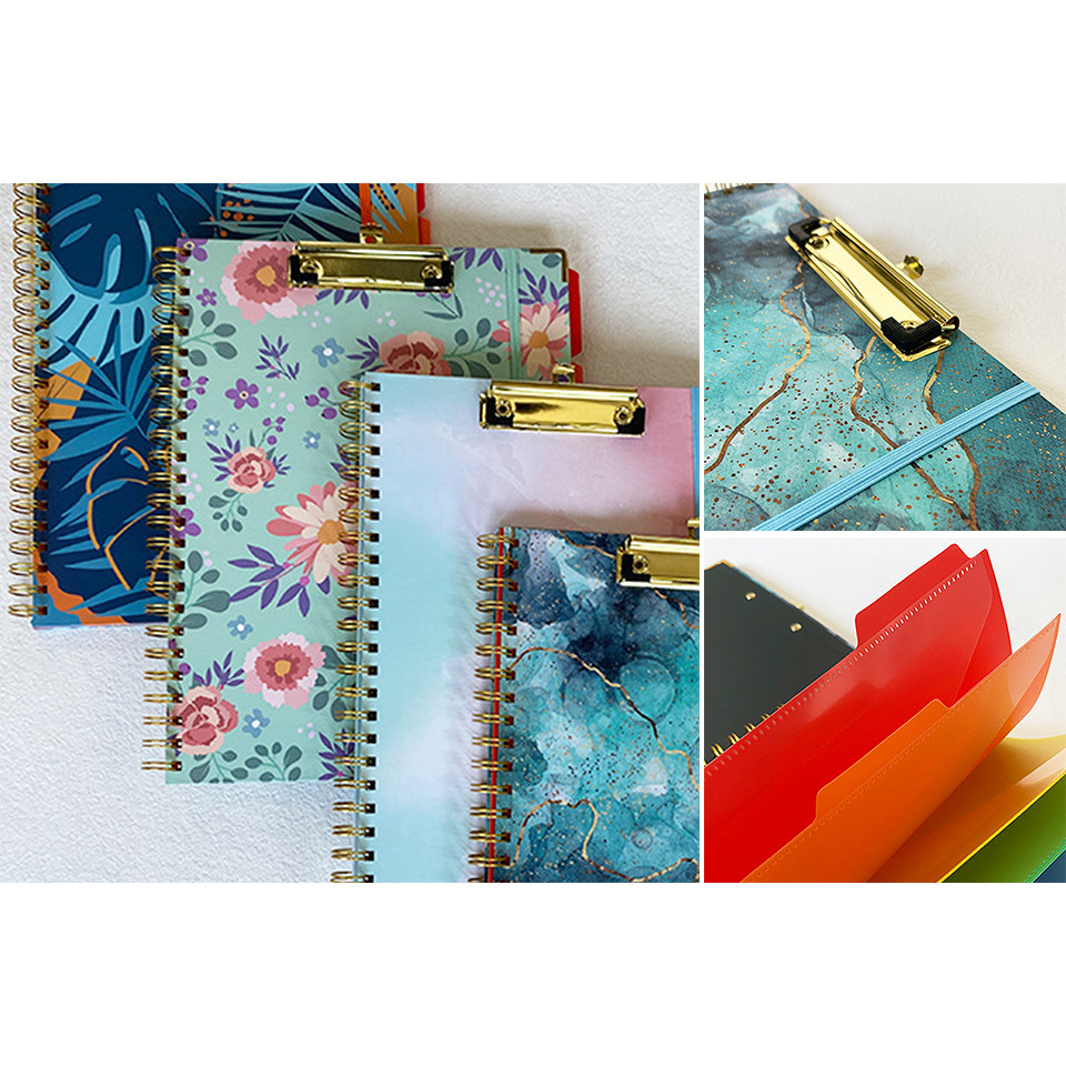 olimpidd| Waterproof Clipboard Folder Cardboard Clipboard Colorful Spiral Document File Folder with Notepad and Pockets Letter Size 5 Dividers for Organization Stylish for Office