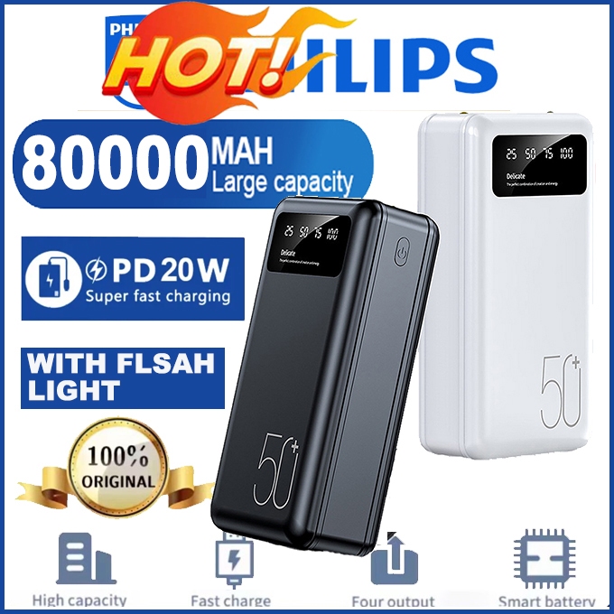 original 80000mAh power bank Fast charging power bank type c With LED lights