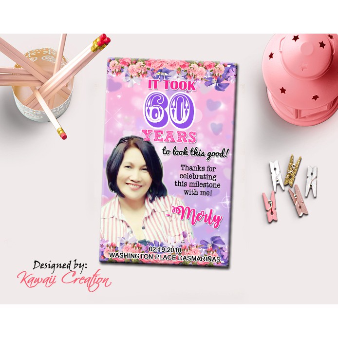 pink and purple adult birthday ref magnet 60th