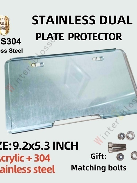 Motorcycle Plate Proctector Stainless 304 Universal Holder Cover with Clear Acrylic & Screws