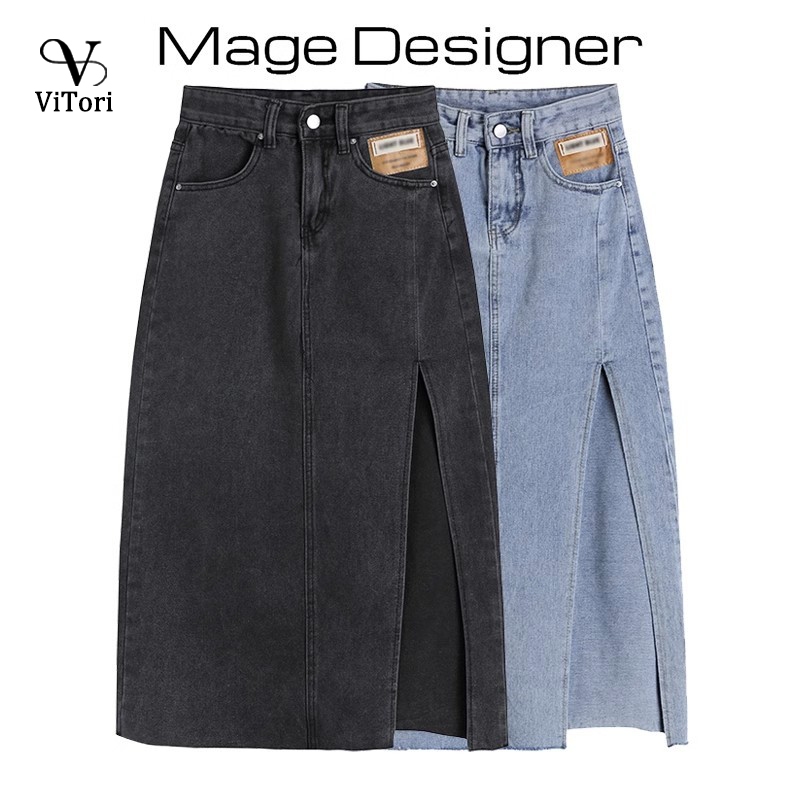 Plus size High slit long denim Skirt sexy black jeans skirt Wash Maong Skirt blue korean palda