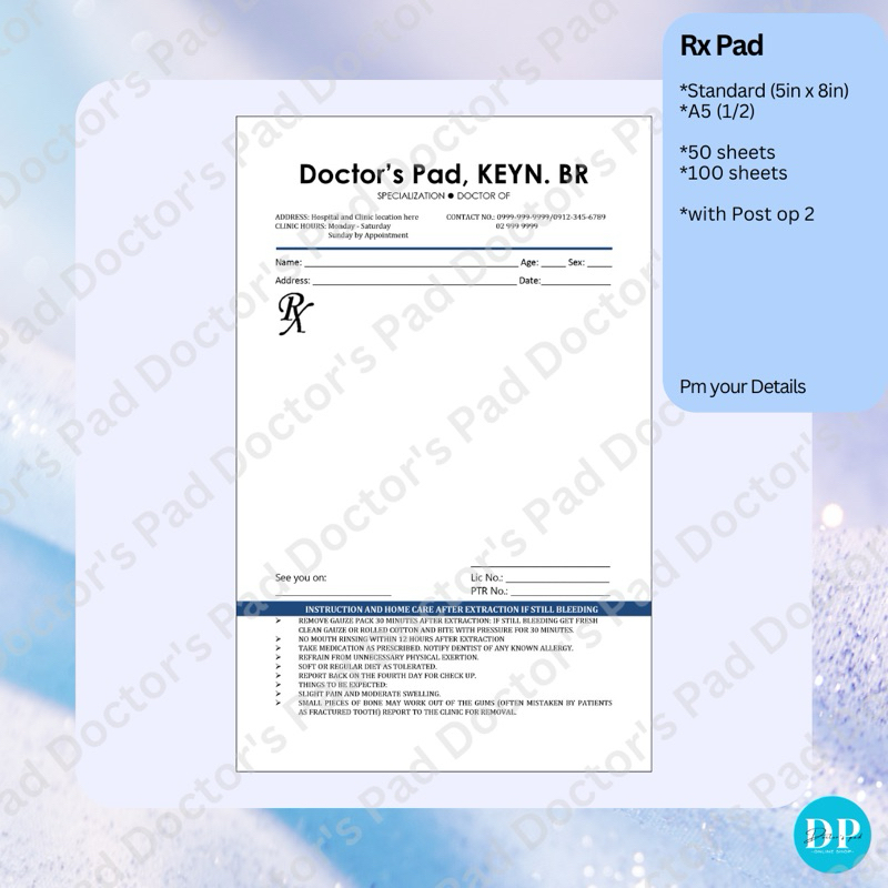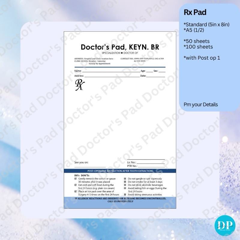 prescription pad reseta with post-op