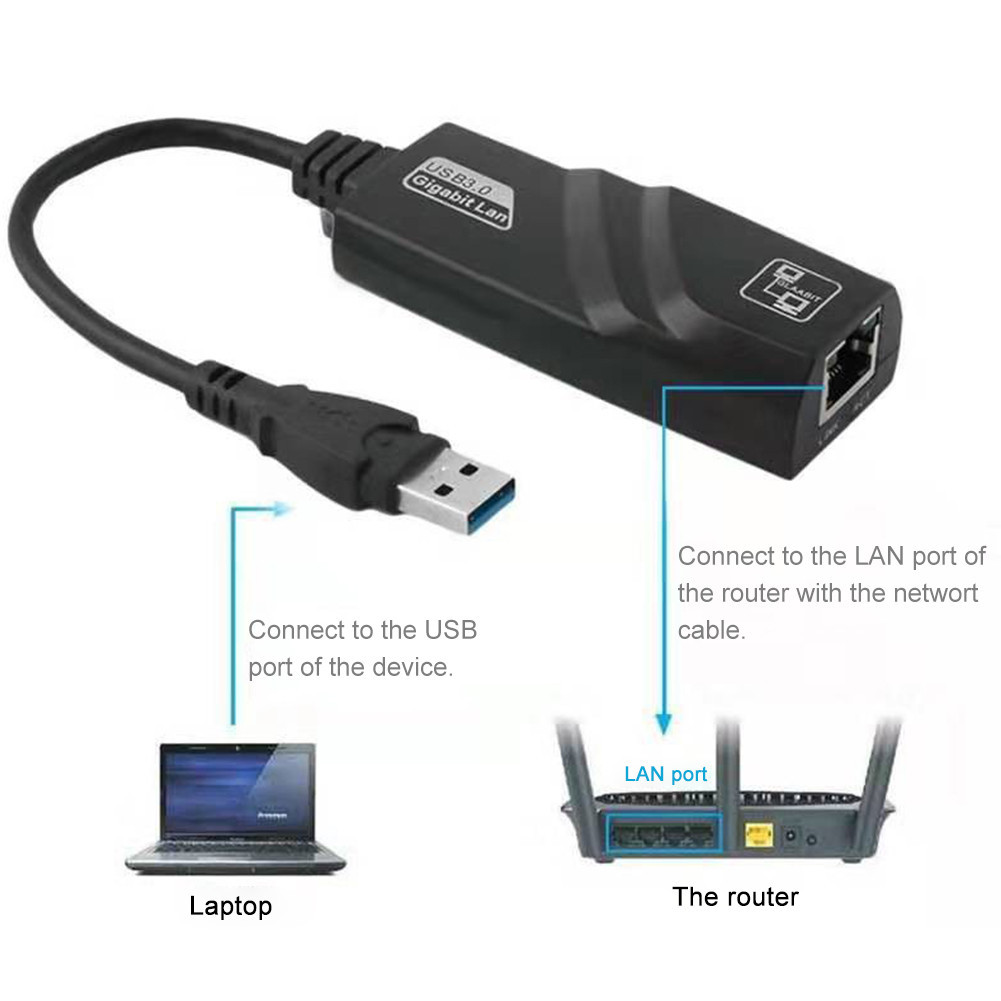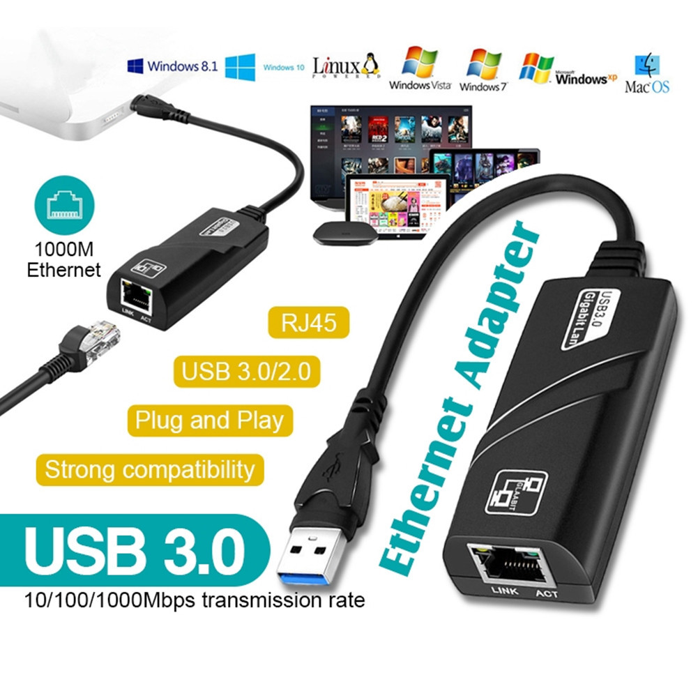 USB 3.0 Gigabit LAN Driverless USB to RJ45 Cable Converter Ethernet Adapter 10/100/1000 Mbps Gigabit for PC/Laptop