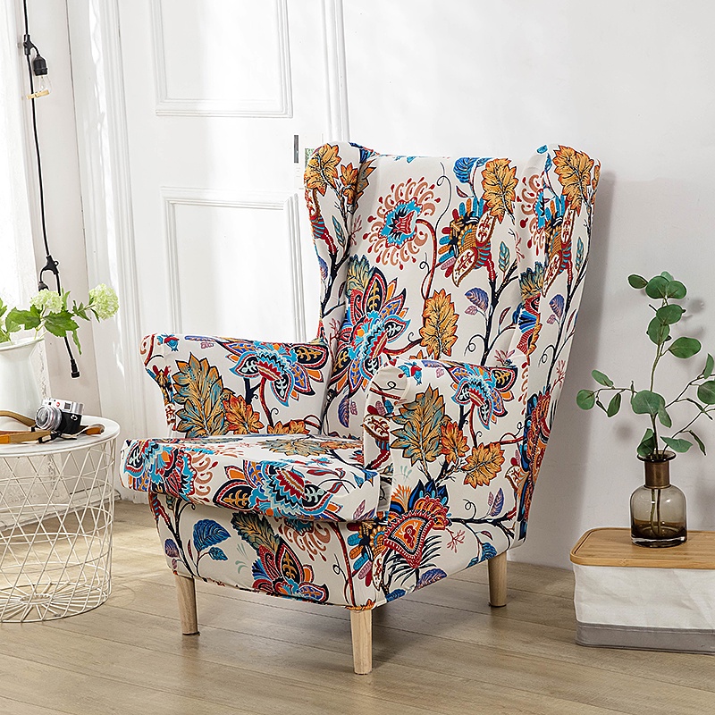 Wing Chair Slipcovers 2 Pieces Stretch Spandex Wingback Chair Covers Sofa Slipcover Printing Wingback Armchair Slipcovers Furniture Protector Couch Soft with Elastic Bottom for Win