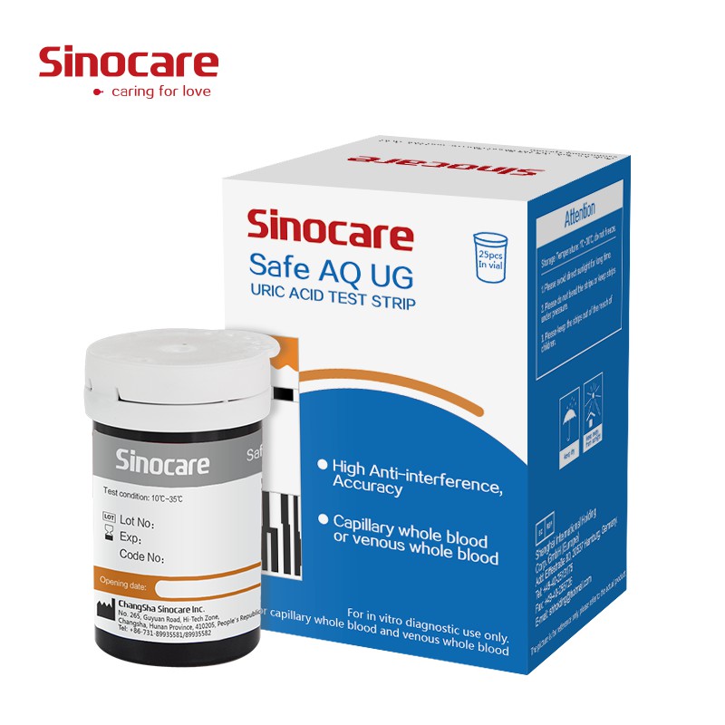 Sinocare [50PCS/100PCS] Uric Acid Test Strips for Safe AQ UG only with Free Lancets