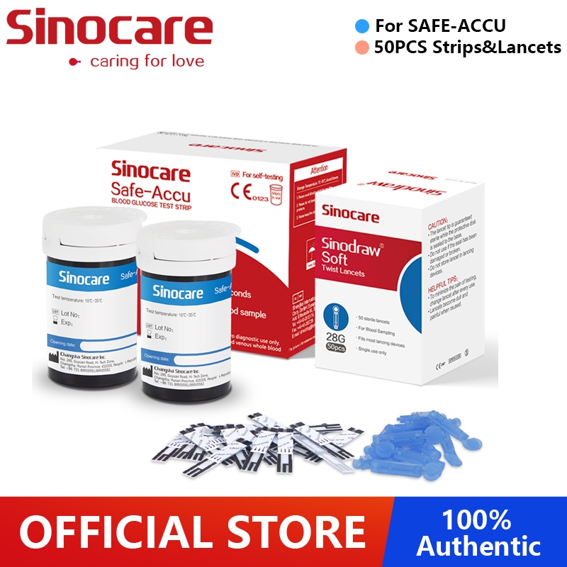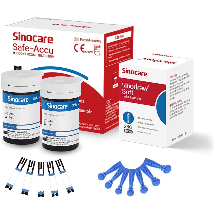 50PCS Sinocare Safe-Accu Blood Glucose Test Strips and 50 Pcs Lancets Blood Sugar Test Kit (No Monitor,Suitable for Sinocare Safe-Accu Glucometer )