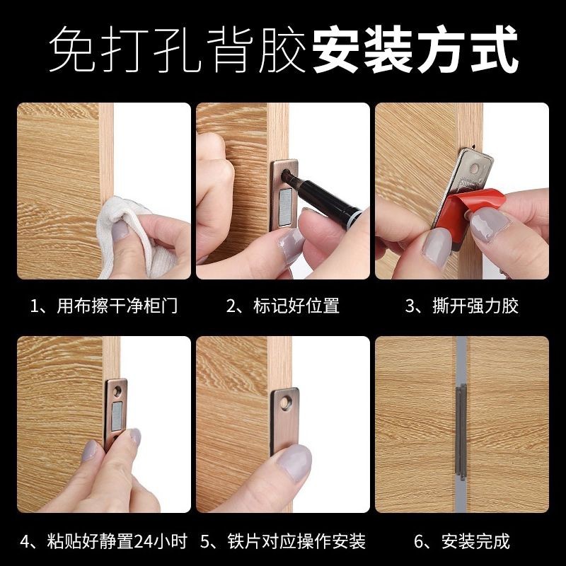 [Strong Style] Door Cabinet Magnetic Suction Patch Lock Magnetic Sliding Door Lock Wardrobe, Bathroom, Dormitory Magnet Fully Automatic Lock