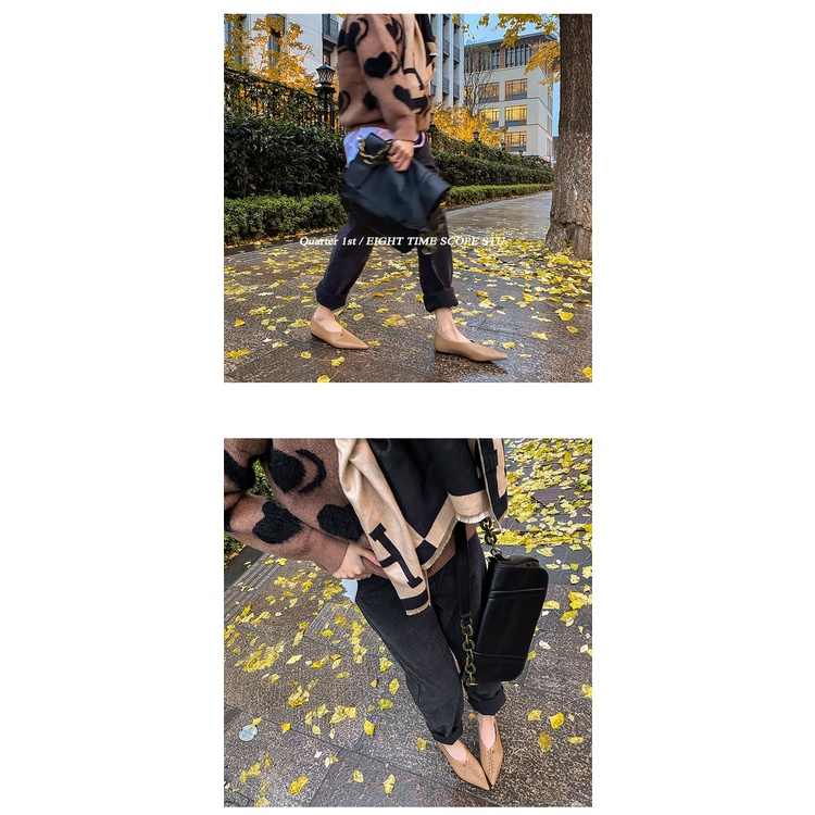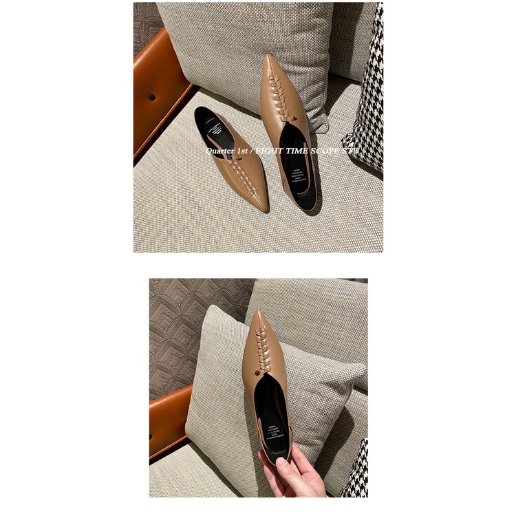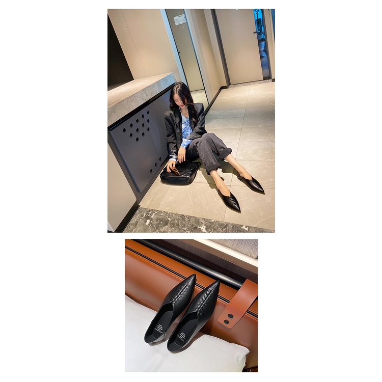 Inside Outside Full Leather Pointed Toe Flat Shoes Grandma Shoes Women Spring New Style Solid Color Pointed Toe Fashion Shallow Mouth Shoes Women Shoes