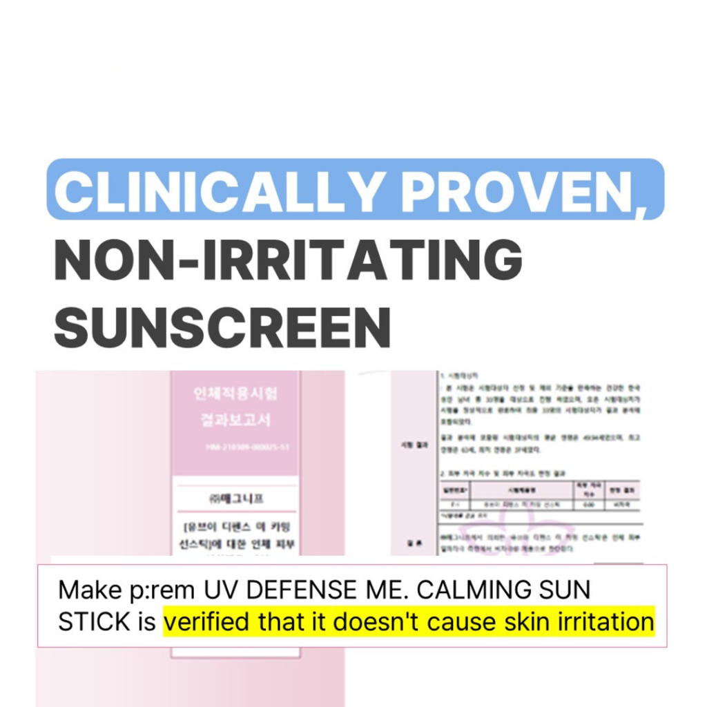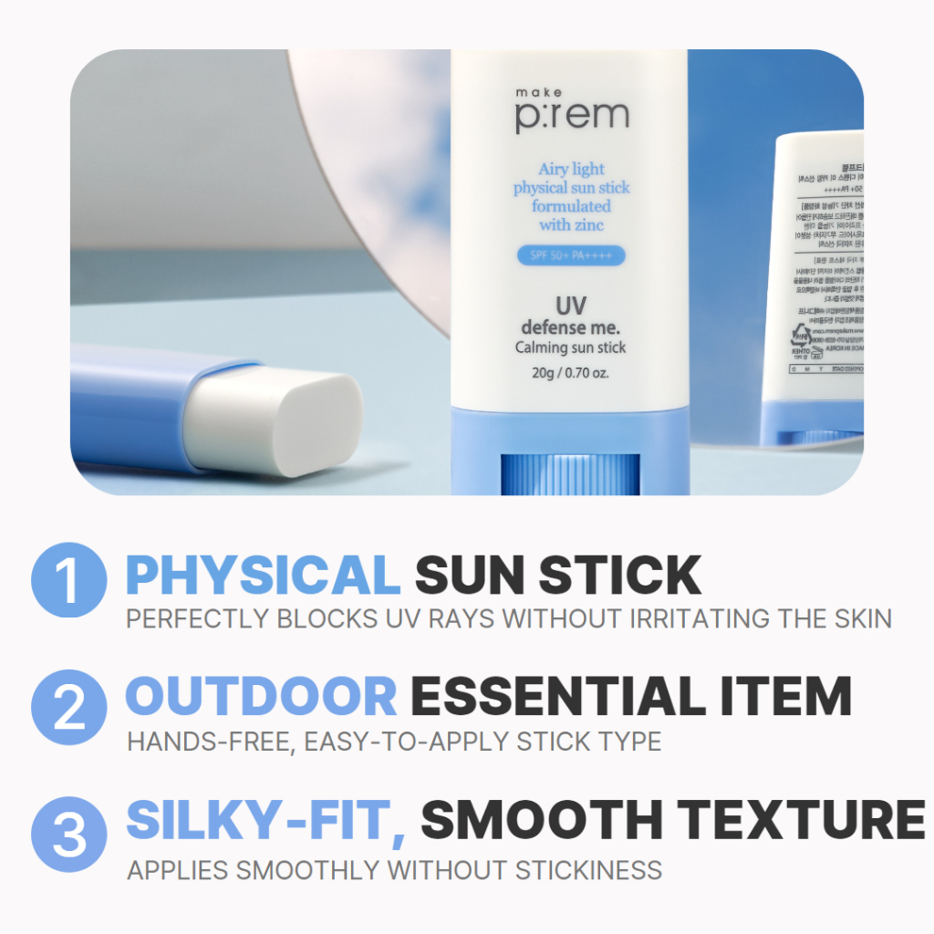 MAKE PREM UV Defense Me. Calming Sun Stick Face Sunblock SPF50+ PA++++ 20g(Physical Sunscreen)