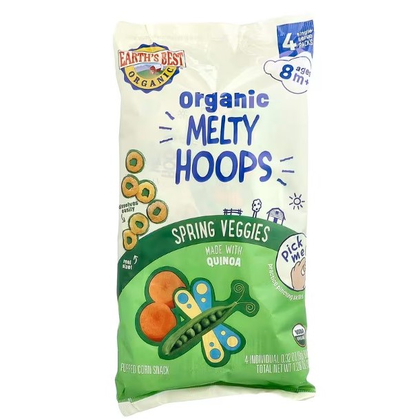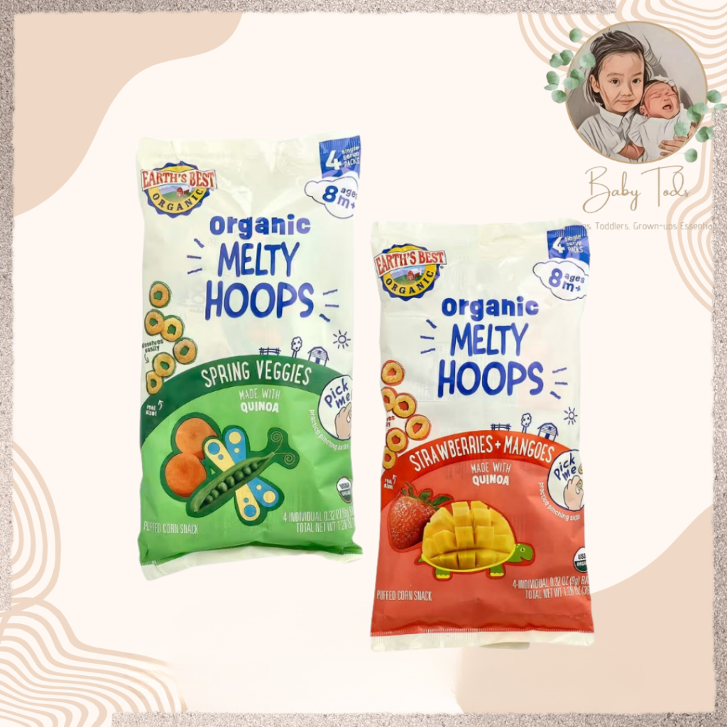 BabyTods | Earth's Best, Organic Melty Hoops, Puffed Corn Snack, 8+ Months, Veggies, Strawberry