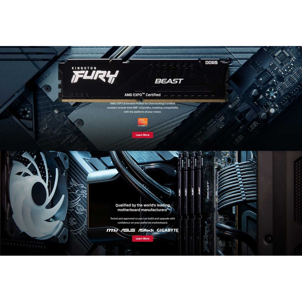 Kingston Fury Beast DDR5 Memory 8GB/16GB 4800MT/S 5600MT/S Desktop Memory Black