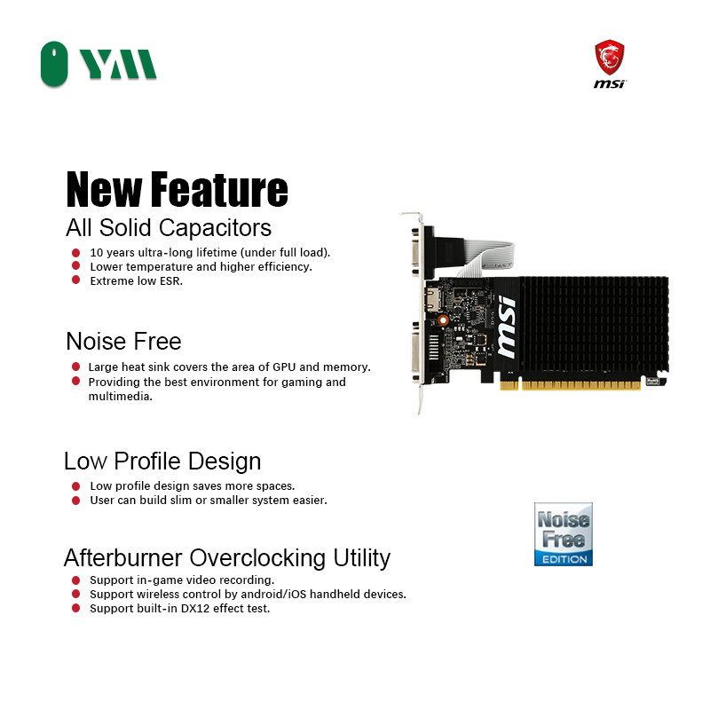 YYM | MSI NVIDIA GeForce GT 710 2GB DDR3 LP Graphics Card Silent Low Profile Video Card for PC