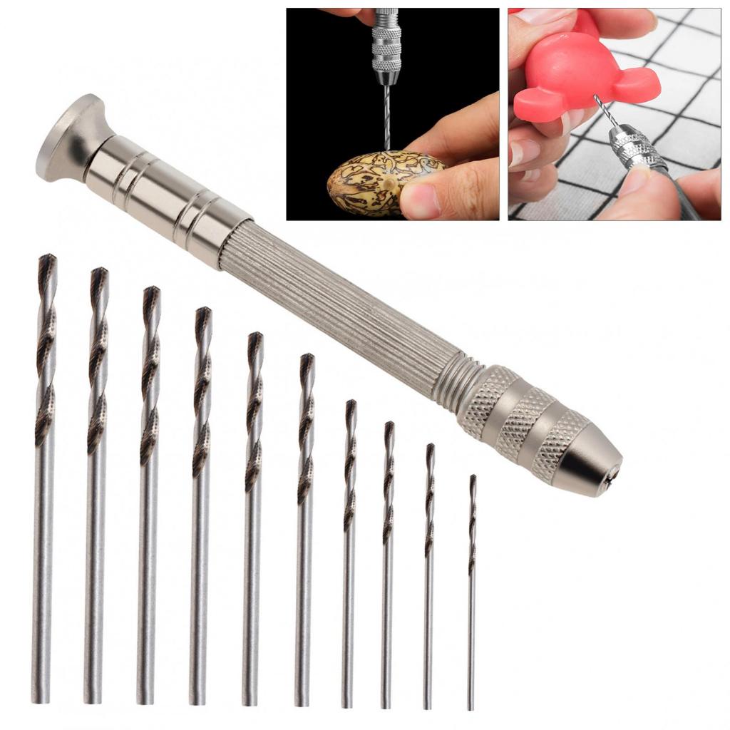 Stainless Steel Hand Drill Miniature and Model Drill Bit Set for Miniature Modelling / Pinning Tool / Mini Twist Drill Bits with 10 Drill Bit 0.8-3.0mm Manual